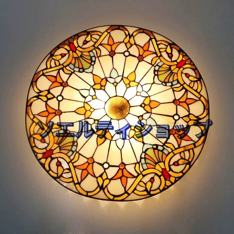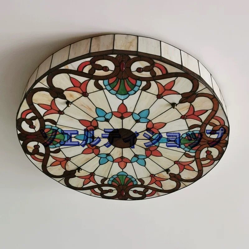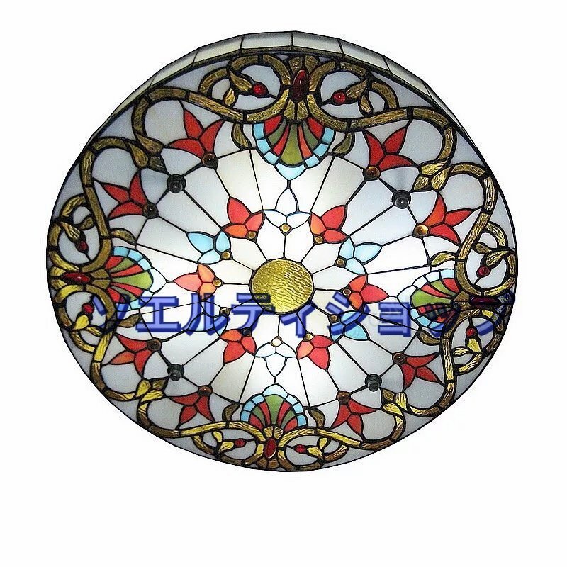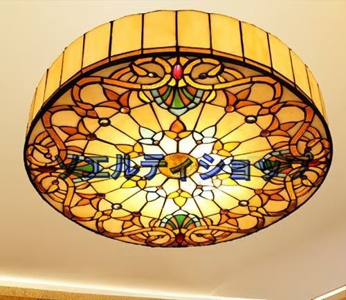 極美品★ステンドグラス ペンダントライトステンドグラスランプ ガラス貝 工芸品 豪華 天井照明