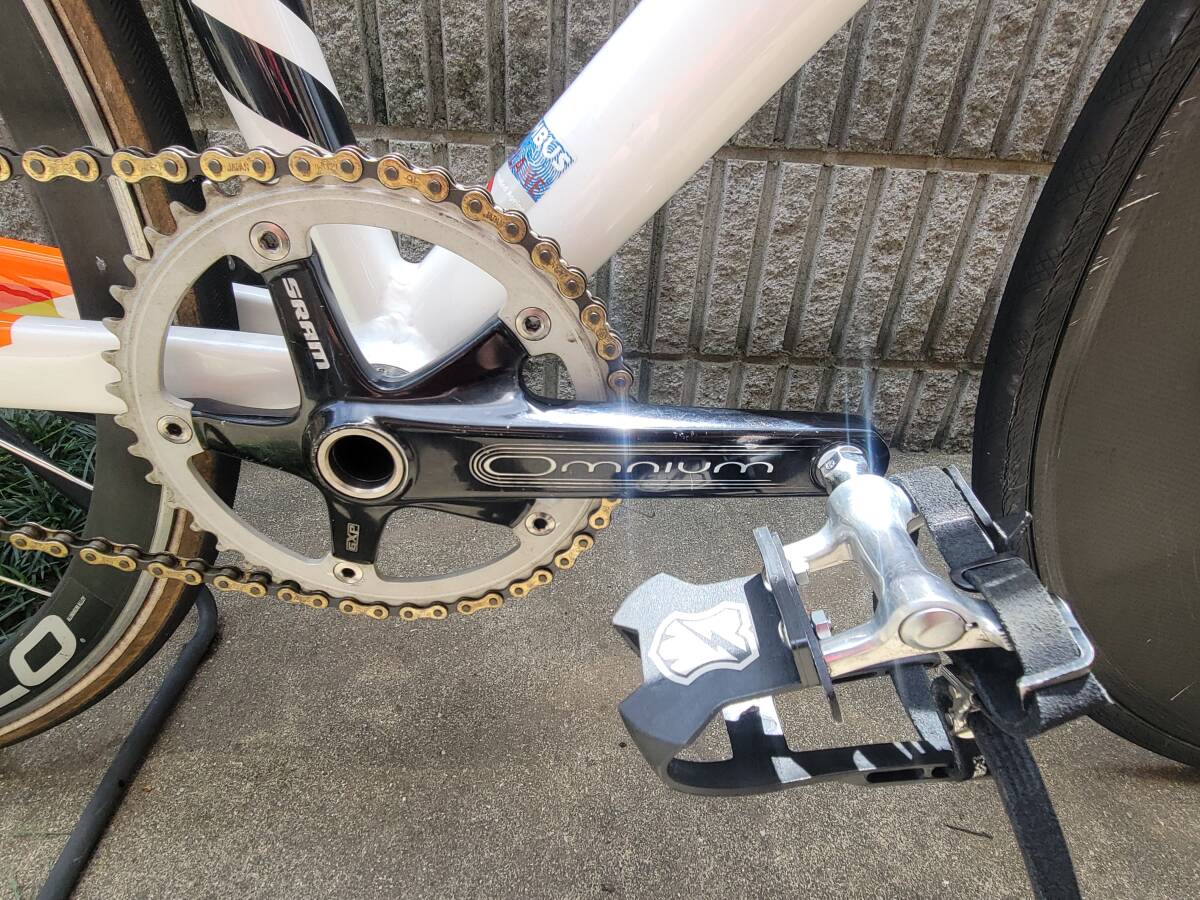 追加画像 画像をたくさん追加してます。 文章ですべてを伝えるのは不可能なので、必ず確認してから入札してください。 売れない場合は値下げしますが、その分パーツを組み替えていくことが予想されます。 そのためこちらのページにはフレームの画像のみですので、 その他のパーツの詳細画像はリンク先をご覧いただきますようお願い致します。 街乗りお遊びピストです。 それでもハイグレードなレース機材を取り入れてます。 アルミフレームにカーボンバトンホイールで、非常に軽量! カンパピスタは巡航性のために重いホイールと言われてますが、 それでも軽量です! ビゴレリは絶版?のようです。 仕様 フレーム CINELLI Vigorelli Alu トップチューブ C-C 545mm程度(ジオメトリ表参照値) シートチューブ BB芯からトップチューブトップまで 540mm程度(ジオメトリ表参照値) (誤差あると思います。) エンド幅(実測ではありません)100/120 ポスト径(実測ではありません) 31.6 ホイールサイズは700 フレームサイズは54 Mで適正身長は165cmちょっと~175cmぐらいでしょうか。 カラーは白系。 フォーク フルカーボン 社外品 ホイール フロント:カーボン3本バトン 中華? リア:カンパニョーロ ピスタ チューブラー クランク SRAM OMUNIUM 165 ペダル MKS RX-1 NJS FIT α MASH TOE CLIP チェーン IZUMI-V SUPER TOUGHNESS 厚歯 1/2x1/8 コグ 15t シートポスト 3T 27.2 カーボン サドル TIOGA SPIDER ハンドル NITTO FOR SHRED BAR 650 31.8 グリップ なし シートクランプ DIXNA ステム 100mm? THOMSON X2 ブレーキキャリパー 105 フルカスタム! チネリはフレーム本体のみで、ヘッド、BB、シートクランプ、フォークまでカスタム! ブレーキワイヤーはインターナル!見た目すっきり! ブレーキ類もしっかり付属します! ばら売りは手間が増えるので基本はしません。 (手間を忘れさせてくれるぐらいの値段を提示いただければ対応します。) あれがいらないこれがいらないといった要望はお受けいたしますが、 基本値段は変わらないのでご了承ください。 ギア 固定ギア ギア比:3(F:45t R:15t) シングルギアで現状固定ギアのみですが、ご希望であればフリーギアも別途お売りいたします。 落札後にご相談ください。 ギアも他に前後ともいくつかありますので、 落札後にご相談ください。 カスタムはおまかせしたい方にはかなりオトクな完成車なのではないでしょうか。 金欠のため、お気に入りで取っておきたい車体を泣く泣く出品しますので、 できれば値下げはしたくないです。 金ができたら、確実に出品を取りやめますので、ご希望の方はお早めにどうぞ。 また、売れなければ私のタイミングで徐々に値下げをしていきますが、 パーツ類もその分グレードダウンしますのでご了承ください。 時間的・金銭的余裕ができたら早々に変えてしまうかもしれません。 パーツはその他にもいくらか余っているので、 ご要望に沿える部分があれば対応しようと思います。 タイヤはシックスリックの25の新品が2本あります。 ギア類他にも少々あります。 (上記すべて追加料金にはなりますが、必要でしたらお知らせください。) ママチャリ等の卒業→スポーツバイクエントリーにいかがでしょうか。 (エントリーに固定ギアはきついかもしれませんのでフリーギアはご相談ください。) 健康のため、自転車移動をするのに本当にちょうど良いと思います。 コロナのこの時期に、電車通勤・移動を敬遠し、 スポーツ自転車に乗り始める方は確実に増えてます。 都内では、固定のピストの人もよく見るようになりました。 特にエントリーグレードなフレームというわけでもないので、 中級者以上の方やコレクターの方にもいいのではないでしょうか。 普段使いに使いやすいようなパーツを付けてます。 シルバー系のホイールを使ってますので、レトロっぽく見えると思います。 ゴールドもいい感じにMIXしてます。 不具合等で出品するわけではなく、 金欠のため手放すことを決意しました。 ※ベル・ライト・リフレクター(リアの反射鏡)は付属しませんので、 公道でお使いになる場合は、必ず付けてお乗りください。 (100均等でも購入可能かと思います。) ※画像のスタンドは付属しません。 ※画像に写りこんでしまった記載以外のものは付属しません。 発送は前輪・サドル・ハンドル・ペダルを取って発送します。 (状況により他のものも取ります。取り付けに工具が必要です。) (必要な方は、落札後ご相談ください。) 佐川の集荷で発送致します。 (箱はこちらで準備致しますので箱代は不要です) 最短で、お支払いいただいた後の週末の発送です。 (状況により翌週になる場合もあります。) お急ぎの方はご注意ください。 (場合によっては家族に依頼できることもありますので平日発送の場合もあります。) 240~260サイズの予定です。 東京発の佐川ですので、送料が気になる方はお調べください。 過去に自転車を送ったことがなく、 運送会社に問い合わせをして確認を取ったわけではないので、 もしかしたら実際送る際、何か
