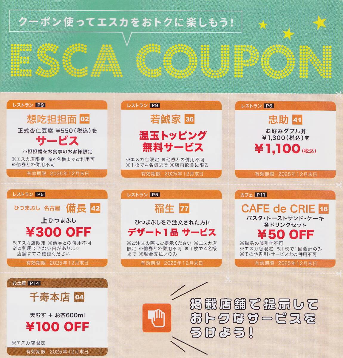 エスカクーポン(愛知県・名古屋駅)クーポン券◆2025年12月末日まで