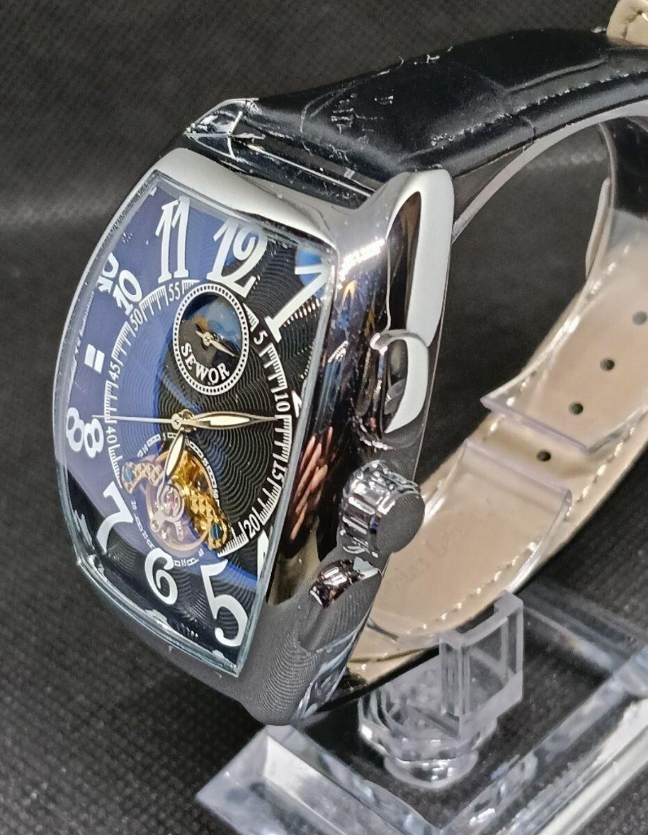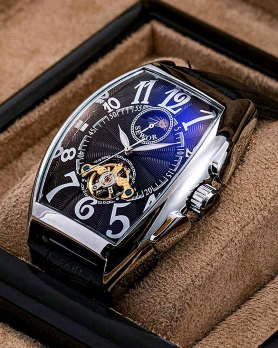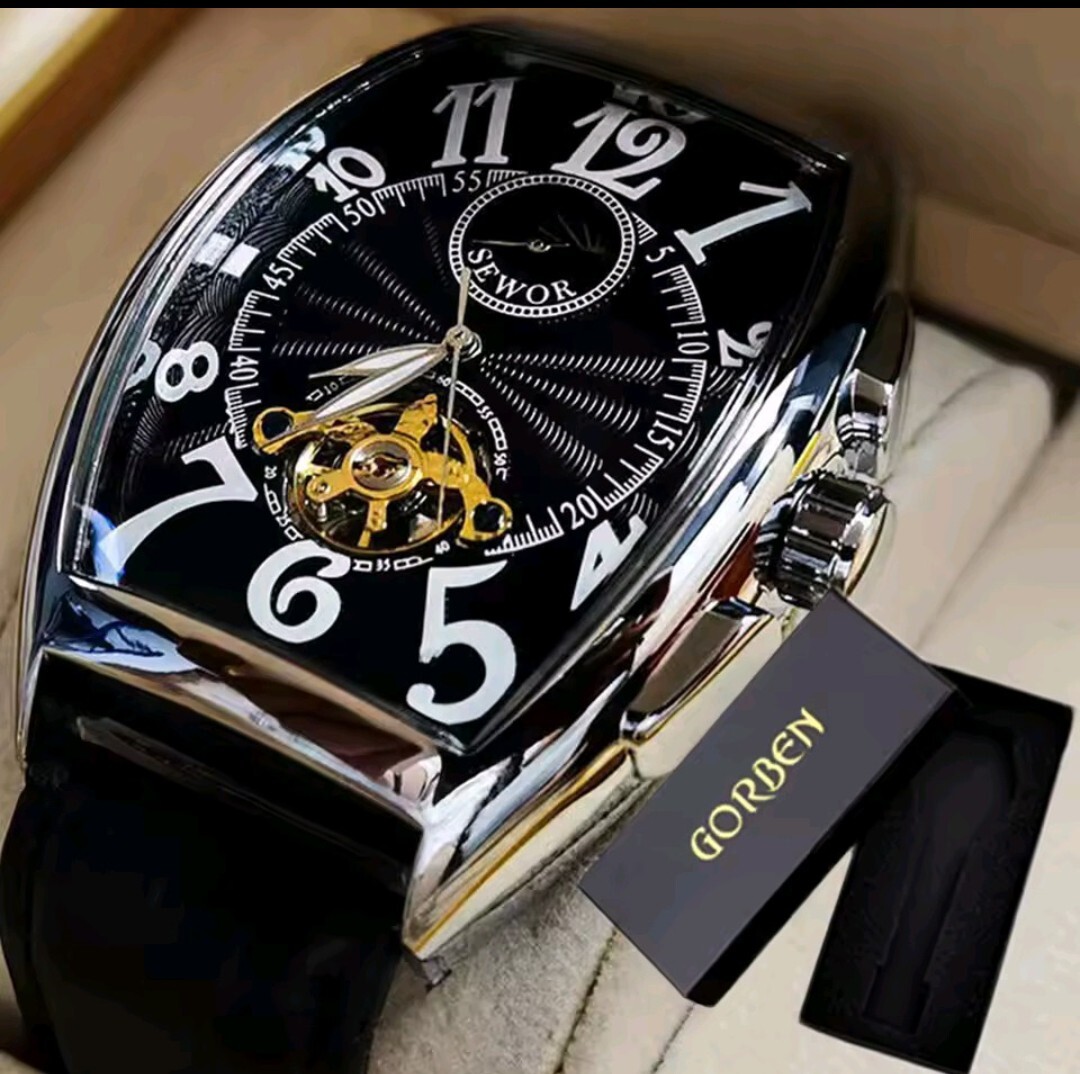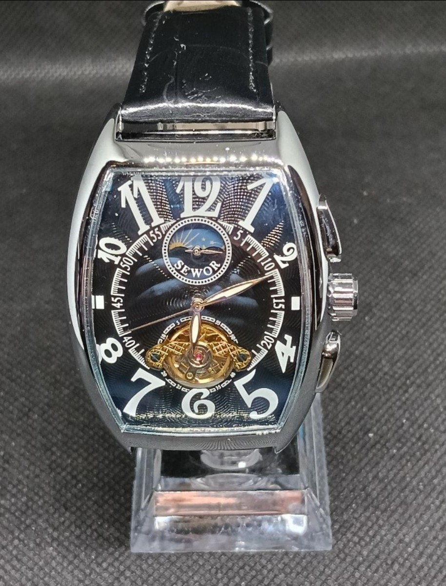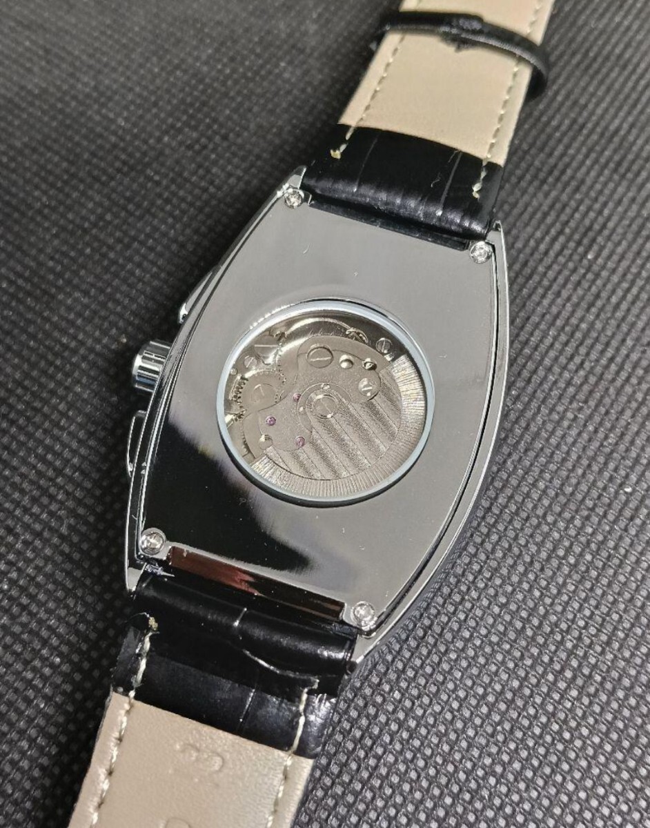 ■トノー型の自動巻き腕時計。ホイールホロー機械式 スケルトン