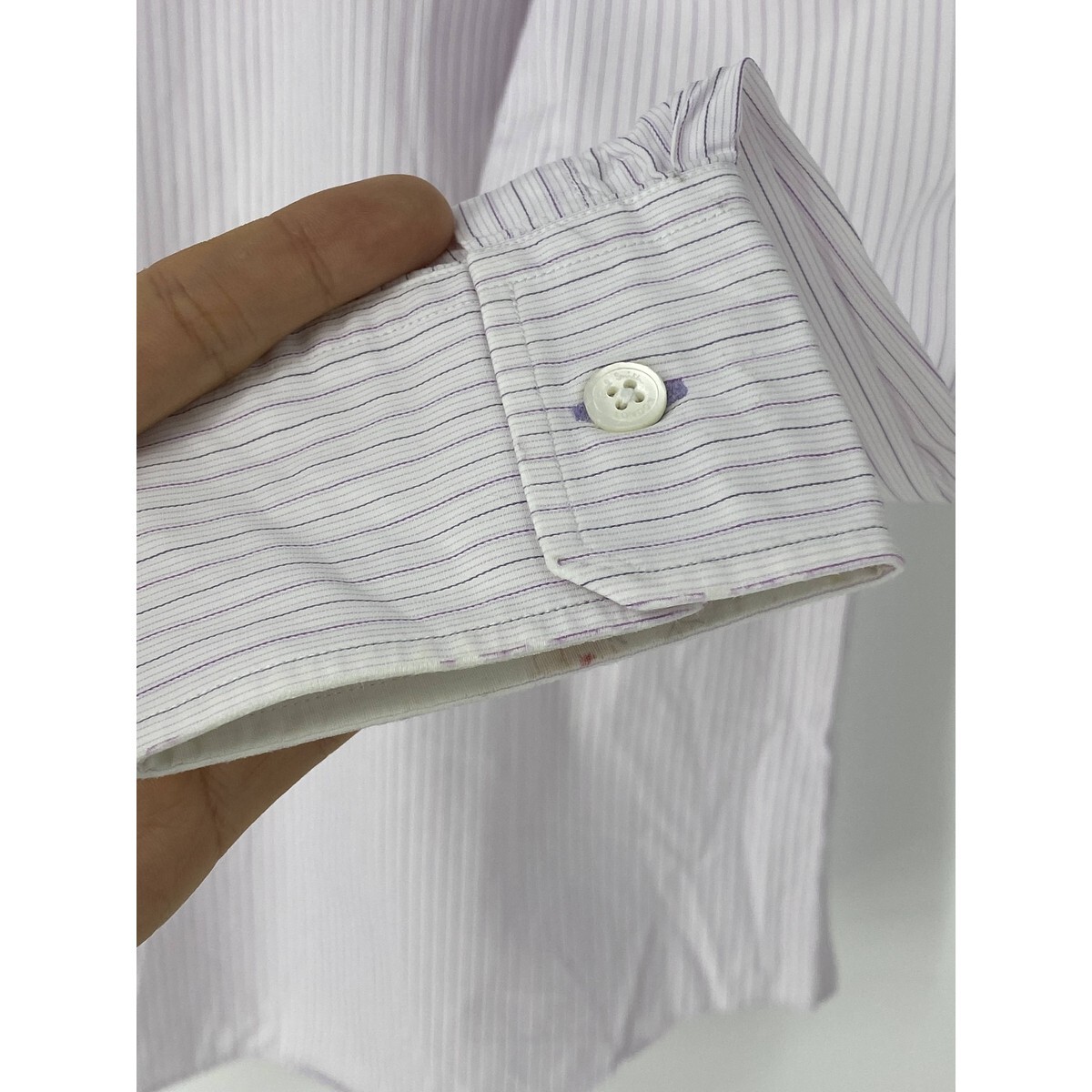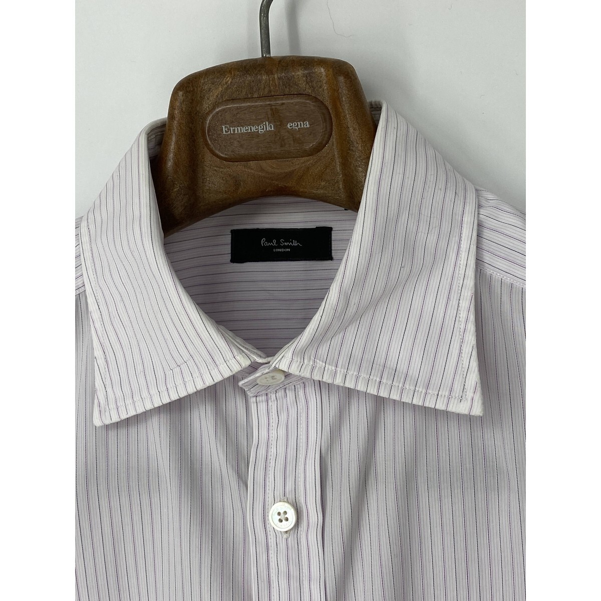 A8085/春夏 Paul Smith ポールスミス コットン ストライプ ワイドカラ― 長袖 ドレス カッター Yシャツ L 紫/メンズ スーツ用 ビジネス