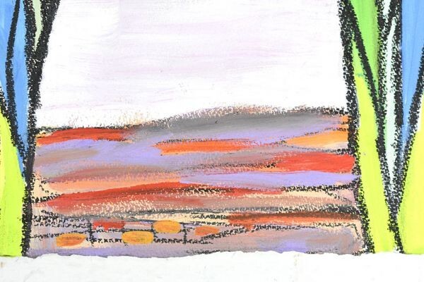 太郎千恵蔵作品「作品」 アクリル クレヨン 紙 裏にサイン、年記 37.5×52.5 2003 Chiezo Taro