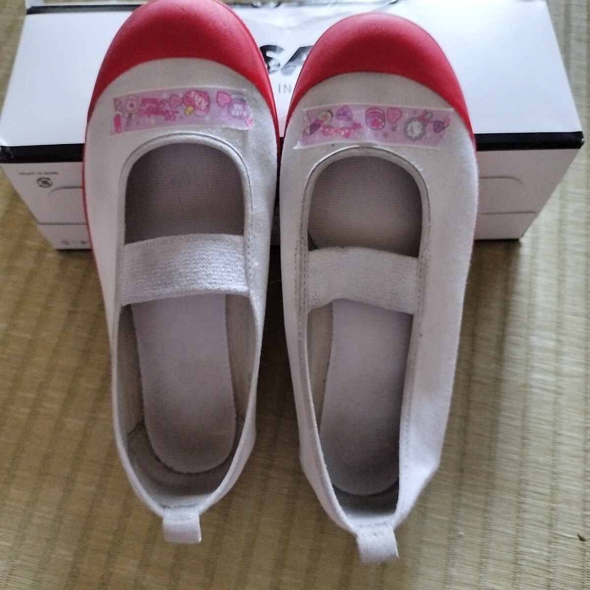 マスキングテープ部分の足の甲、かかと部分にひらがなフルネームの記名が薄くあります。