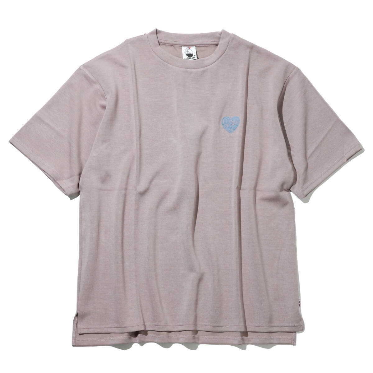 ハートロゴが特徴的なバックプリントが目を惹く半袖Tシャツ。