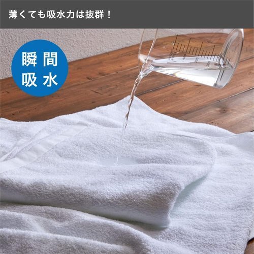 薄手のフェイスタオル。特徴は乾きが早い、たたむとコンパクト、絞りやすい、もちろん柔らかくて吸水性がいい。銭湯やスポーツジム、バーベキュー、キャンプ、旅行、業務用に最適。