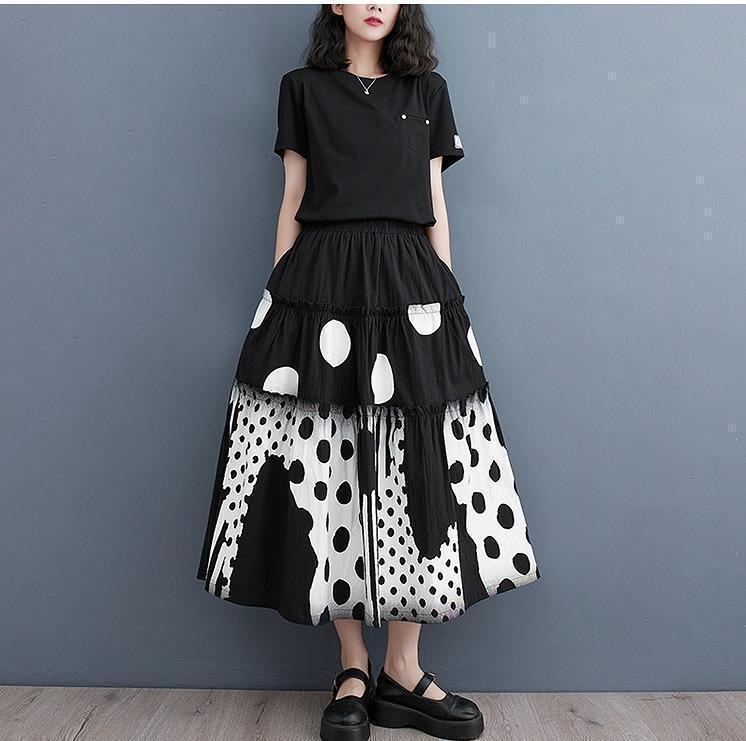 新品 大きいサイズ 水玉 ドット柄 ロングスカート 変形スカート ゆったり夏秋
