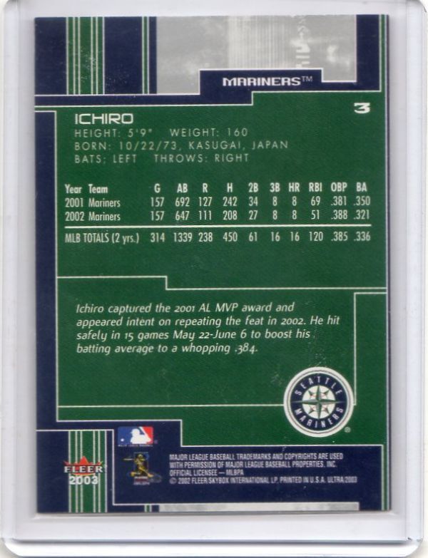 | ★☆イチロー カード Vol.168 2003FLEER ULTRA #3☆★ | |