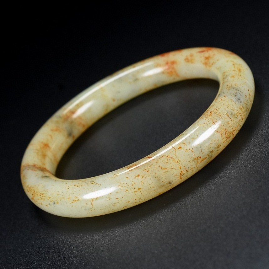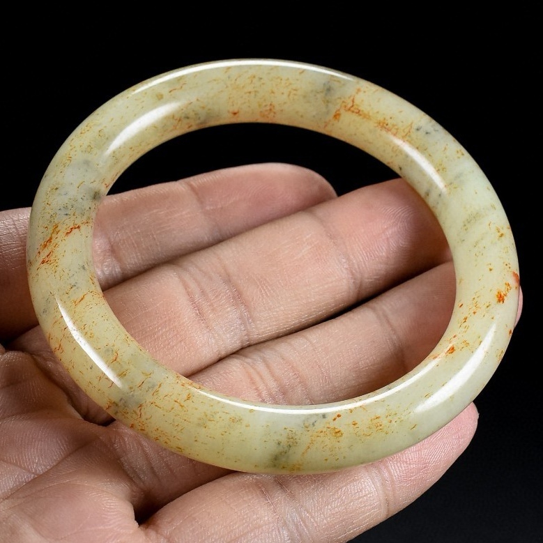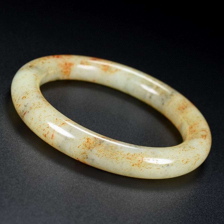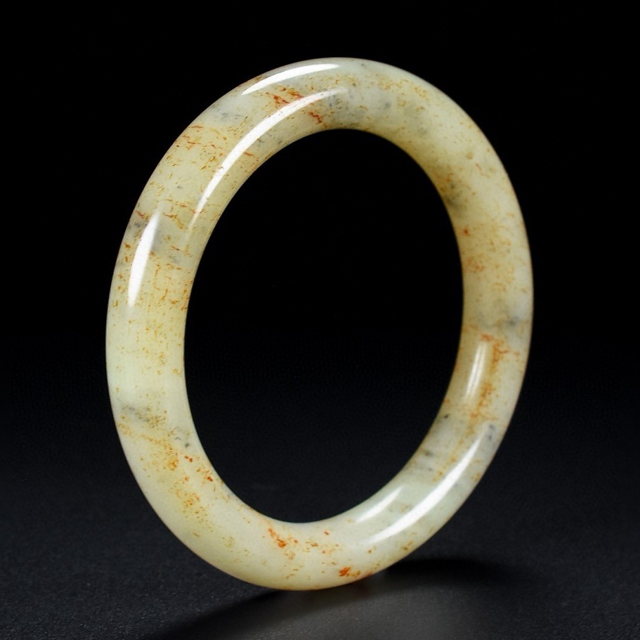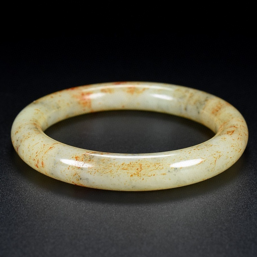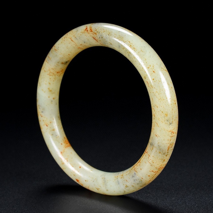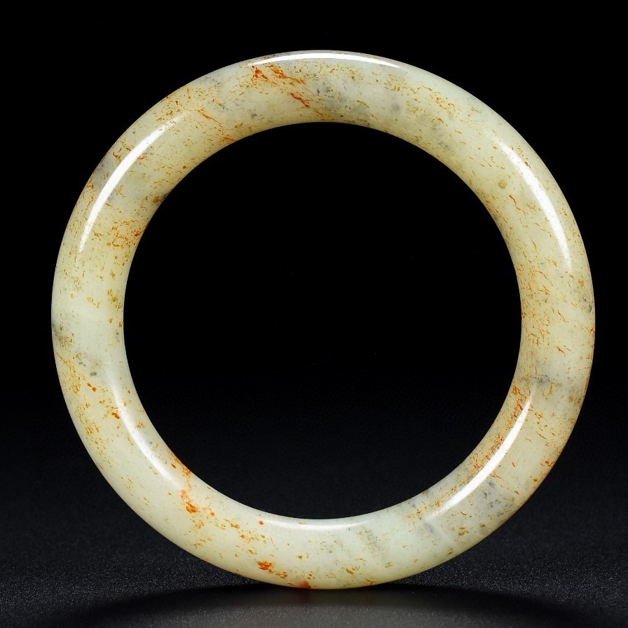 *珍品旧蔵* 清 玉彫 和田老玉 圓形腕輪一枚 玉質細膩油潤 極細工 中国古玩 骨董品 古美味 H48