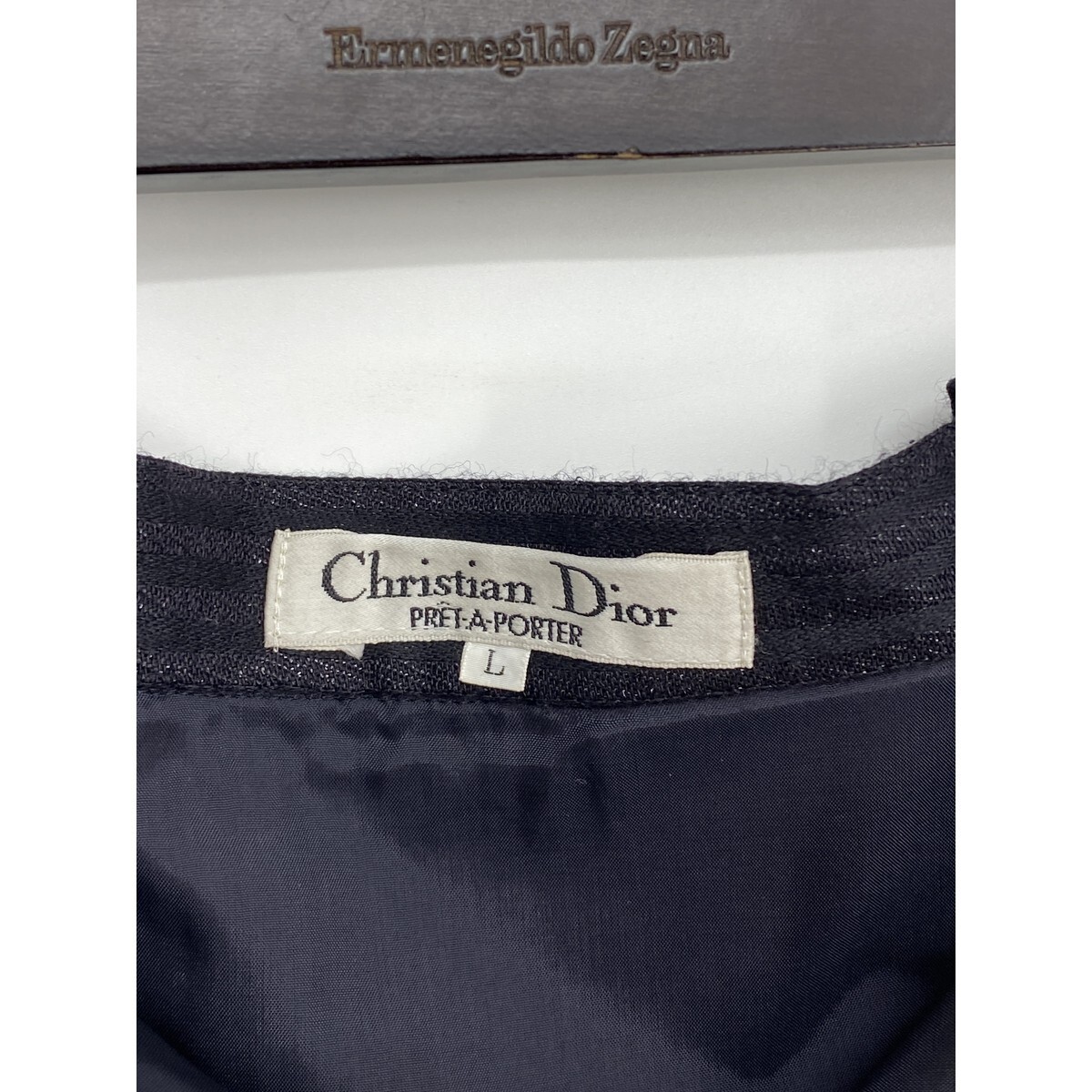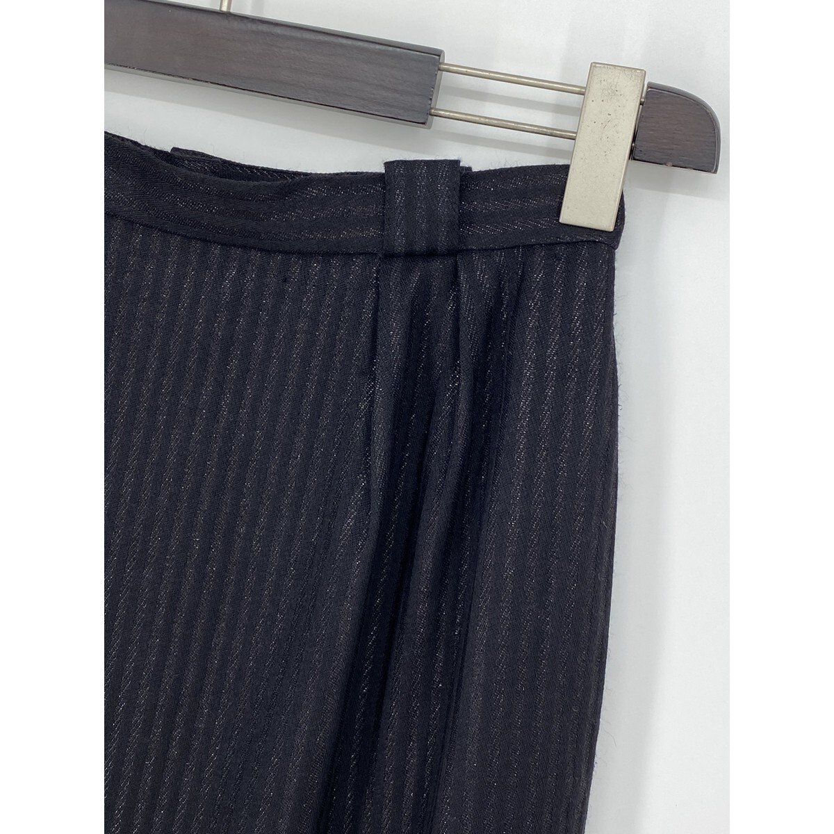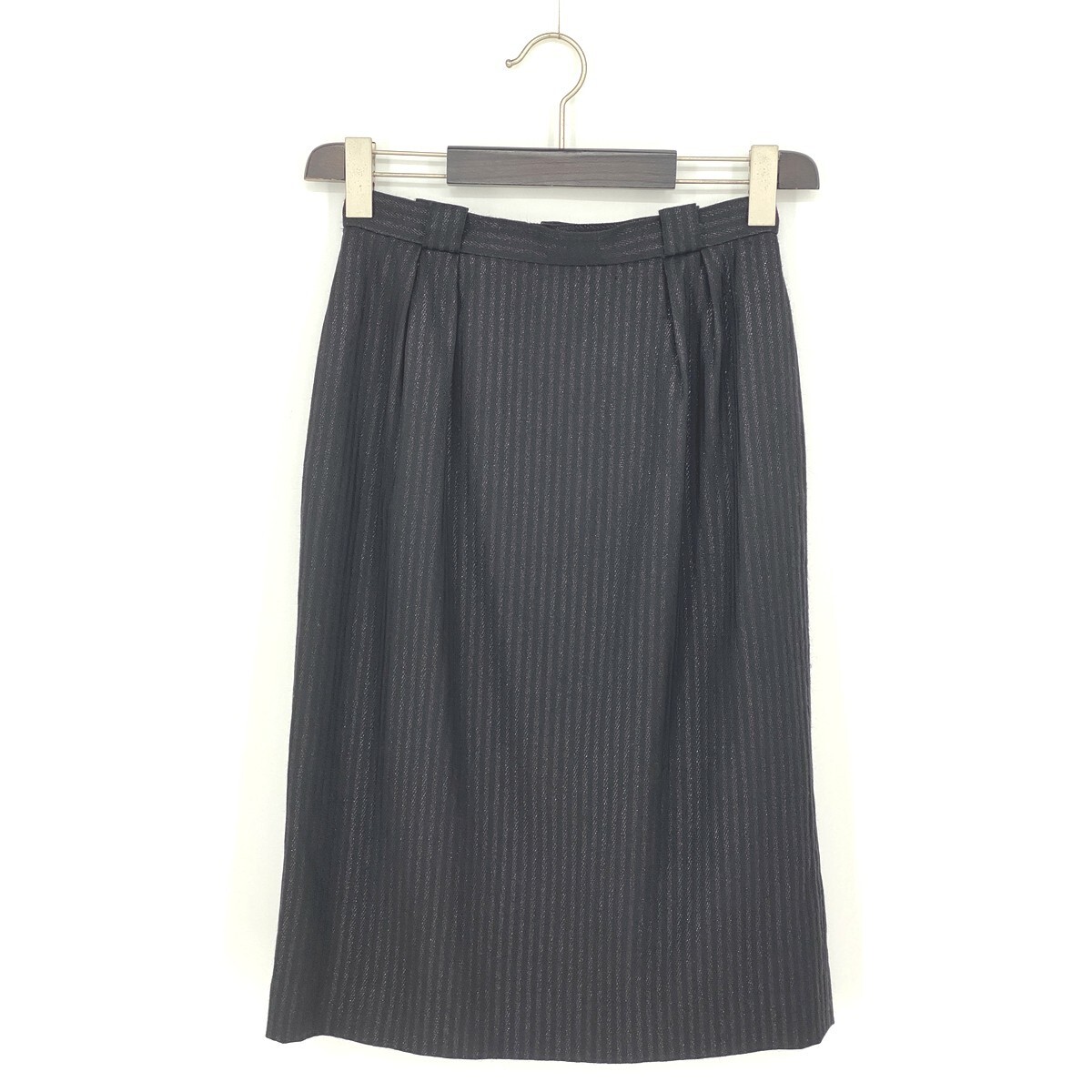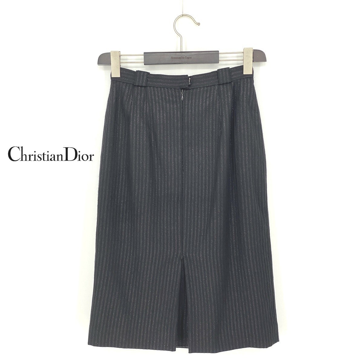 B0814/ビンテージ 90s Christian Dior クリスチャンディオール ウール ストライプ タイト ロング ミモレ丈 スカート L 黒 レディース
