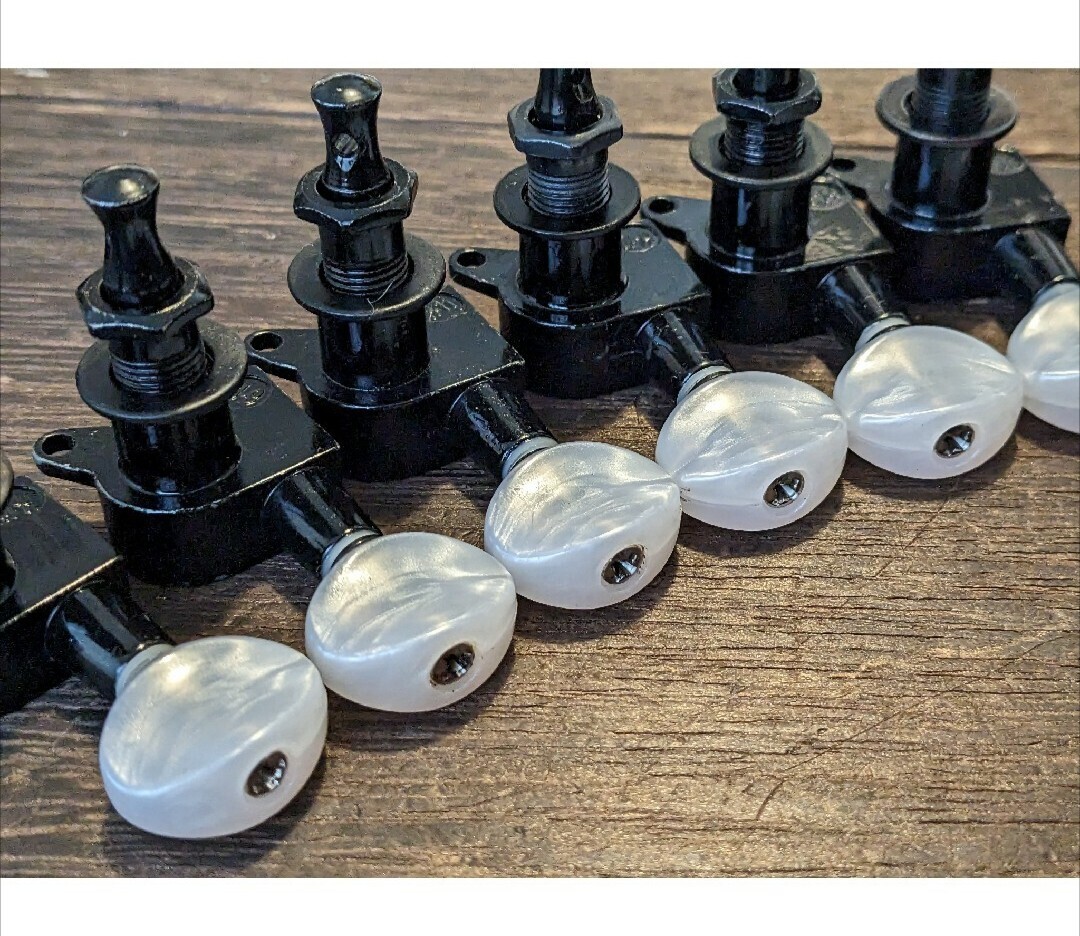 ●ペグは最適とされるヘッド厚1.7cm以上のヘッド厚の厚いギター(または薄過ぎるギター等も)、に取り付けされる場合、ナットの咬みが浅いために取り付けが出来ない場合がございますが先方事情とし返品不可とさせて頂きますのでご了承下さいませ。(ヘッド厚にムラがあるギター、個体差、塗装の厚いギターでヘッド厚が厚くなる等、様々なケースが頻繁にございますのでご注意下さいませ)