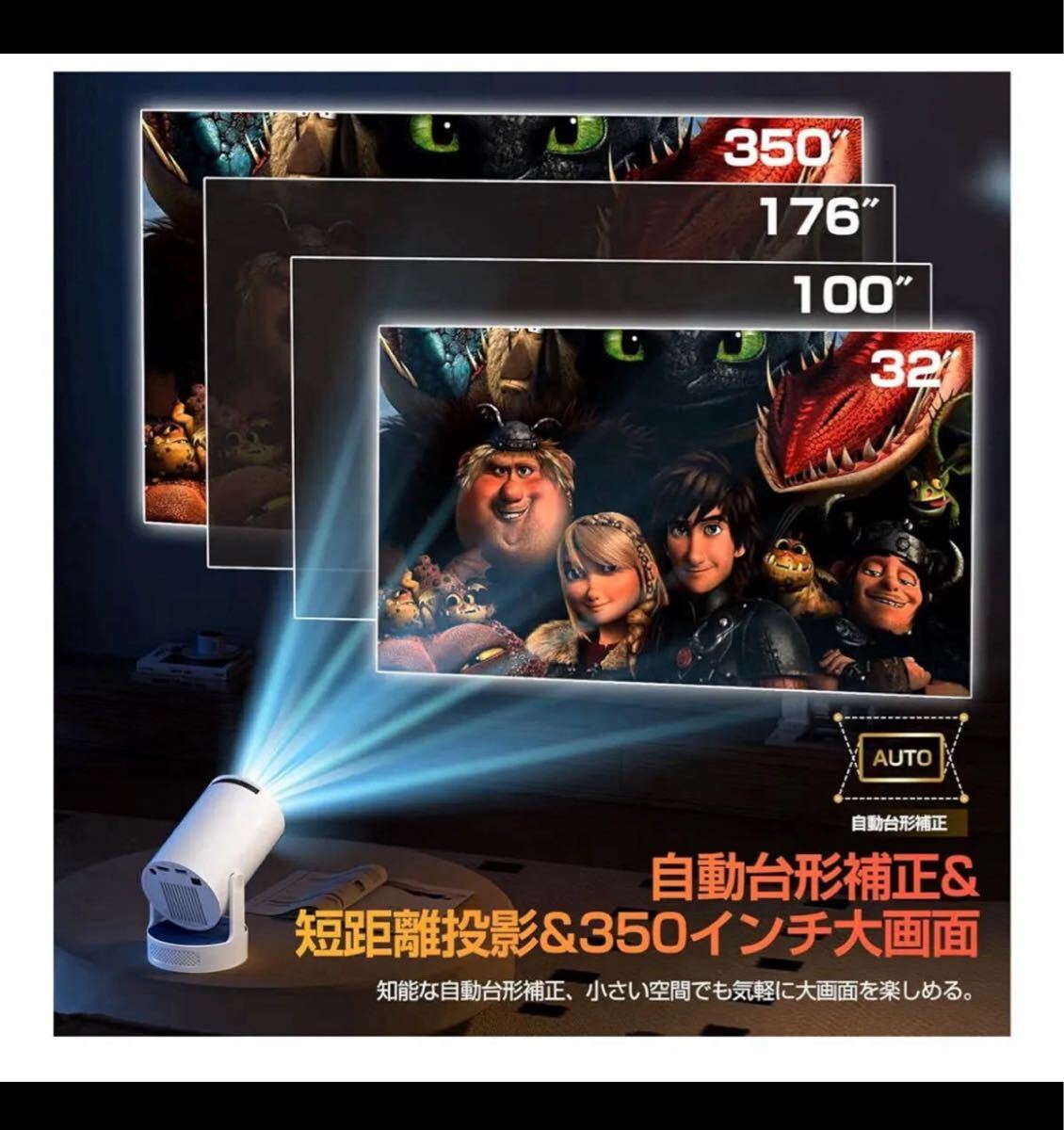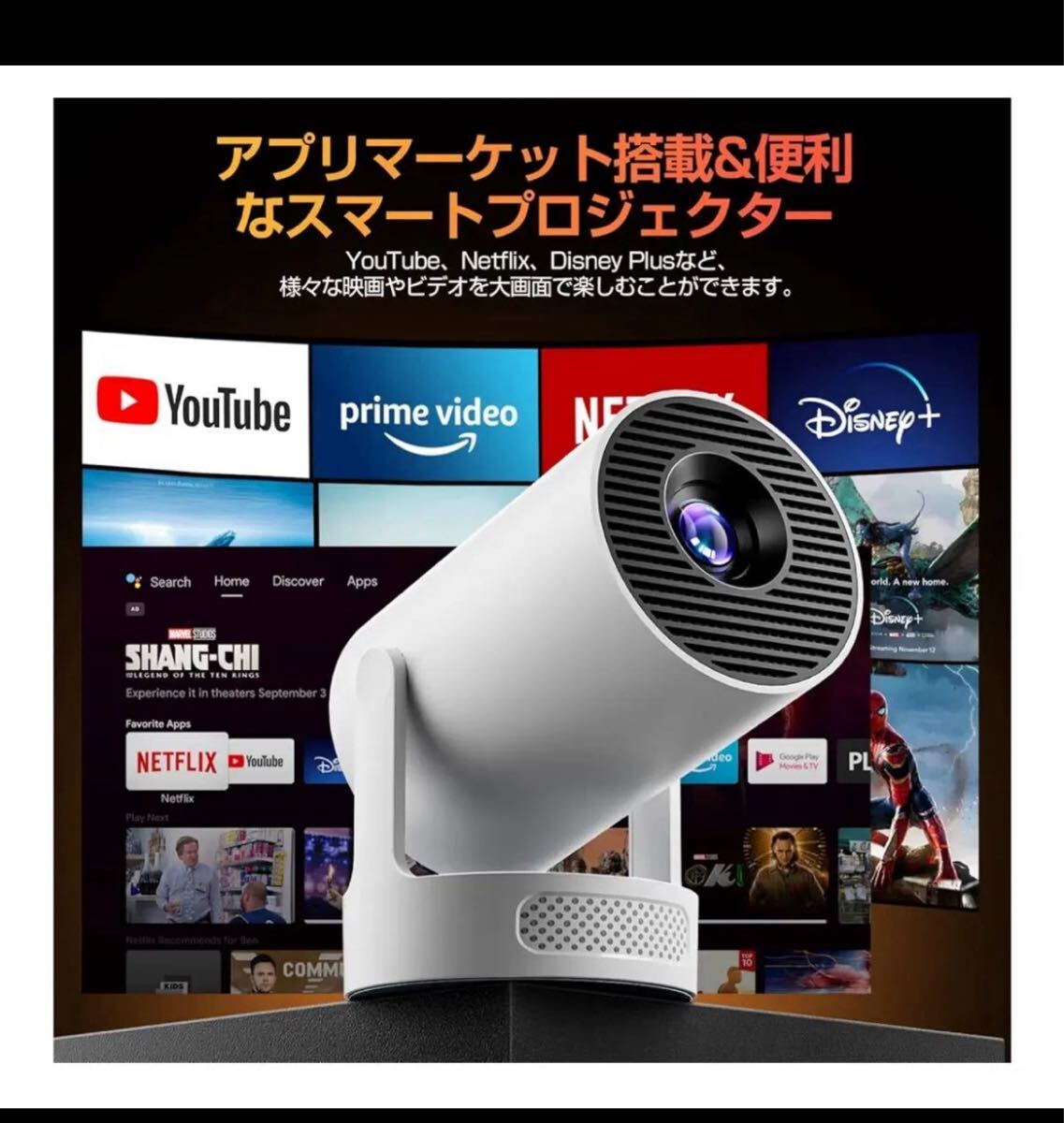 【Android TV搭載・350インチ大画面・短距離投影・自宅の映画館!】:プロジェクター 家庭用にはAndroid TVが内蔵されており、Wi-Fiに接続すると、Prime Video、YouTube、Netflix などの8,000 以上のアプリから 500,000 本以上の映画やテレビ エピソードを楽しめます。要件に応じて Google Playストアやアプリストア から豊富なアプリをダウンロードできて、TVスティックを別途購入や複雑な設定は一切不要です。0.5M~3Mまで短距離投影でき、小さい部屋でも十分に使え、手軽に30インチから350インチまでの大画面で楽しめます。ホームプロジェクター は270°自由に回転できる一体型デザインを採用しており、三脚を使用せずに自由に投影角度を選択で、座ったり、寝転んだり、横向きになったりしながら、リラックスした映画鑑賞体験を実現できます。