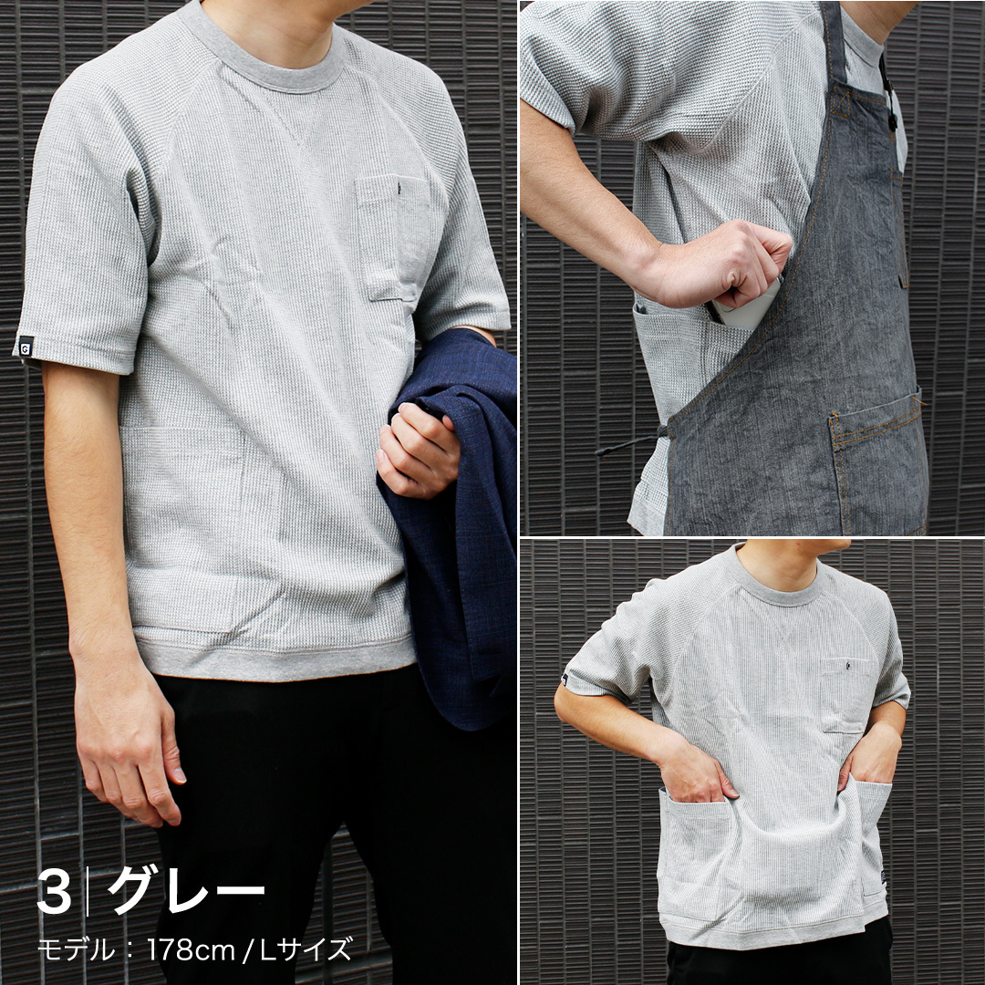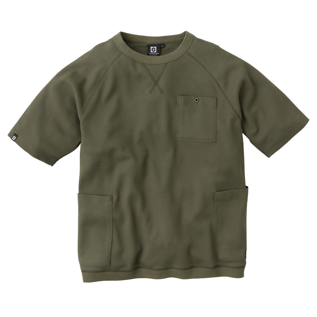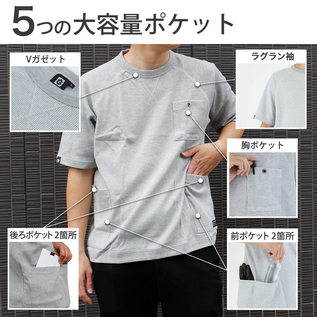 ワッフル生地の点接触でサラサラ触感の5ポケットTシャツ。