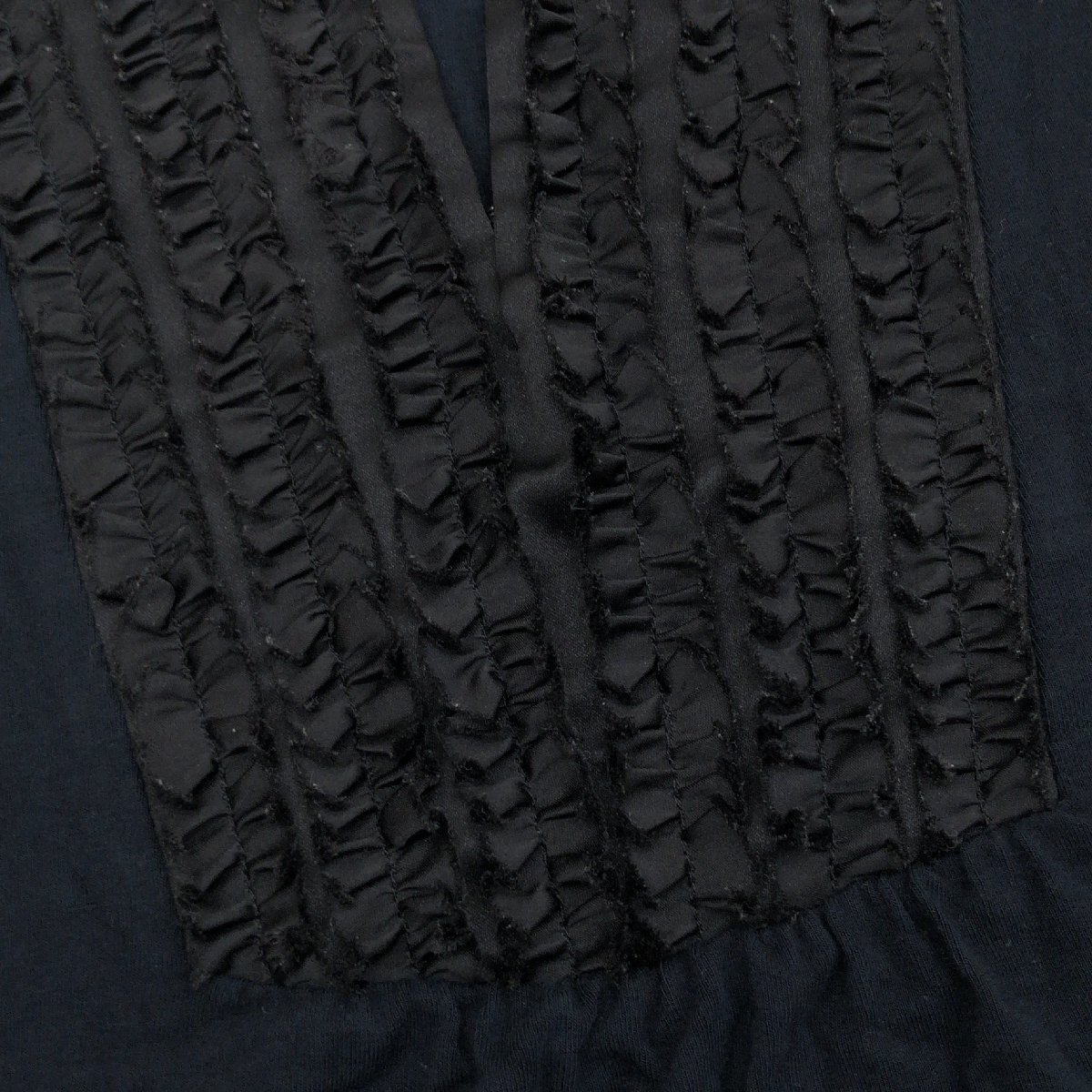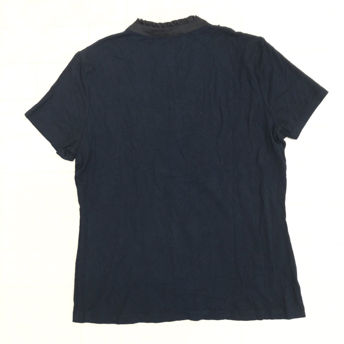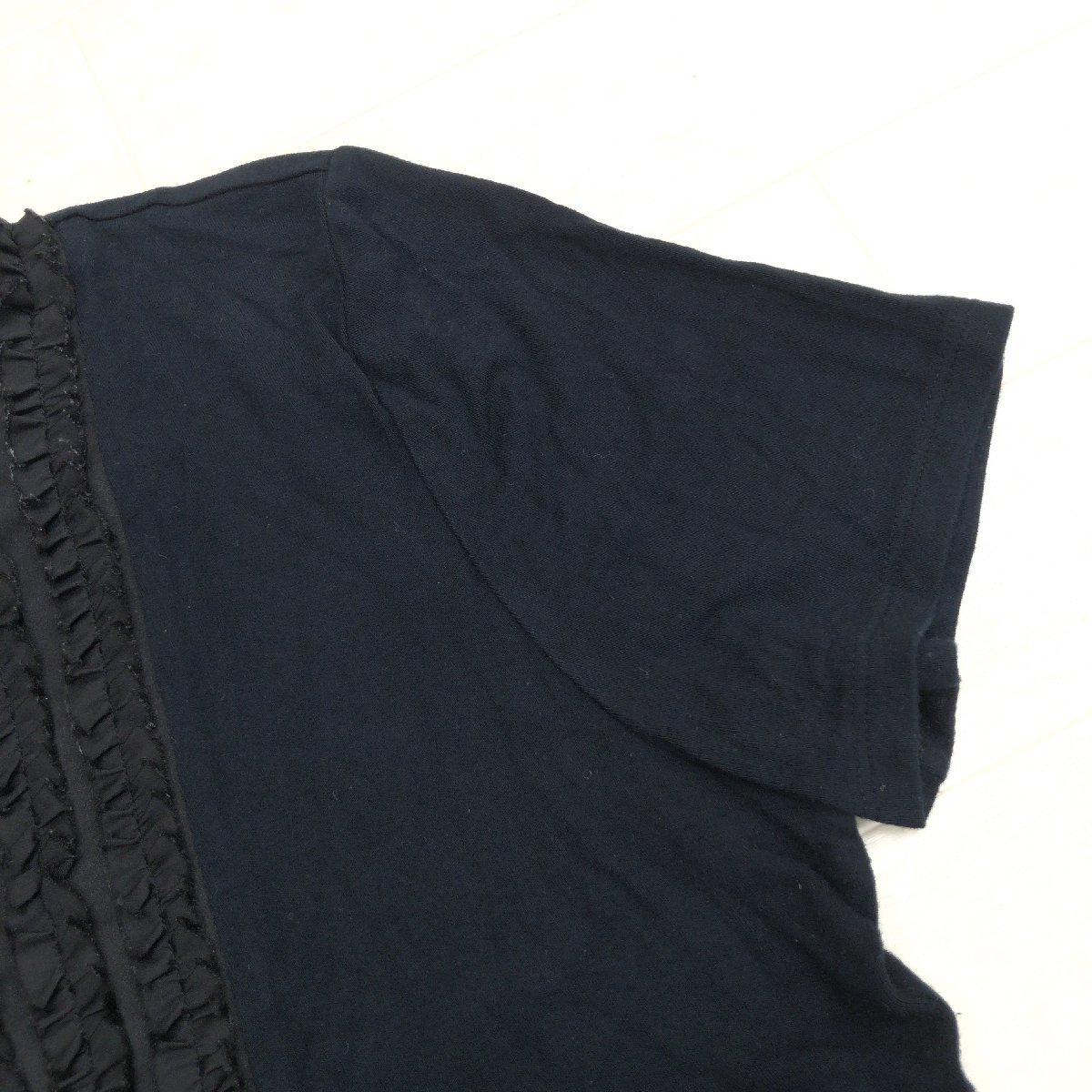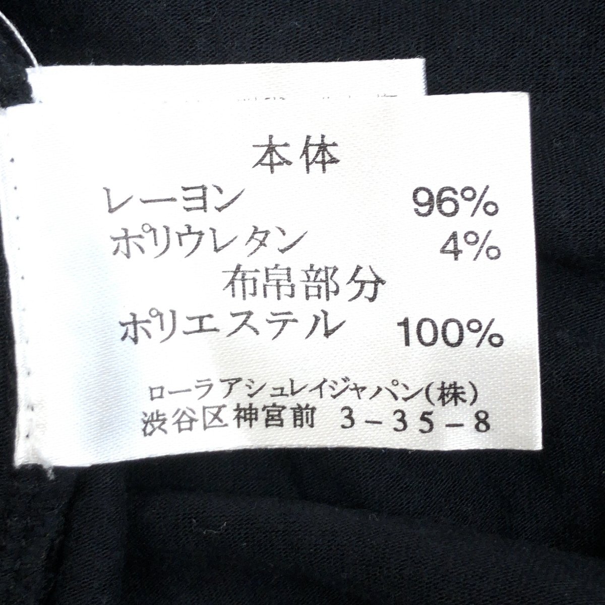 LAURA ASHLEY ローラアシュレイ サテン フリル ドッキング ストレッチ カットソー M 黒 ブラック Tシャツ 半袖 スタンドカラー レディース