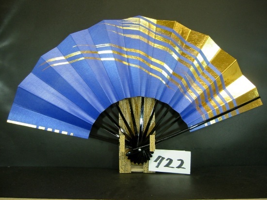 舞扇子 A722 金ナナメかすみ 青べたシルバー引き 【箱なし】