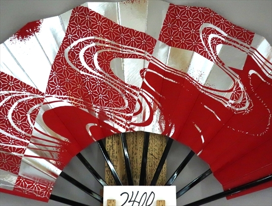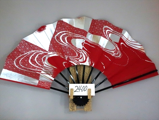 舞扇子 A2400 銀箔波麻 赤顔料地 【箱なし】
