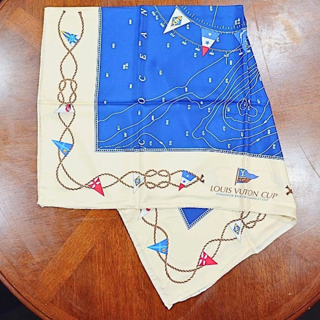 「LOUIS VUITTON ルイ ヴィトン LV シルクスカーフ Louis Vuitton Cup アメリカスカップ 海図 ヨット フラッグ」です。