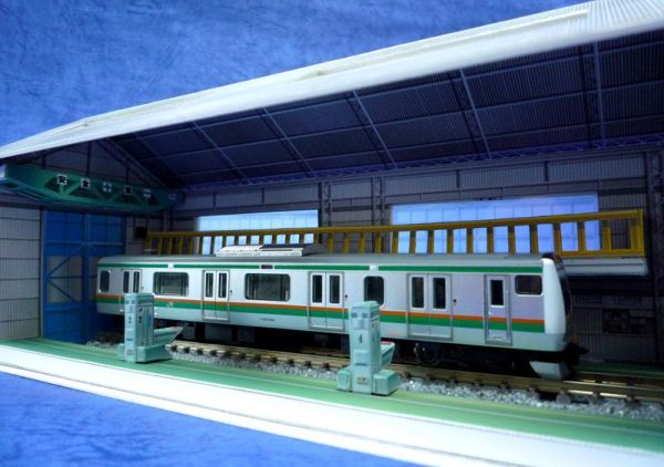 ○自作のNゲージ用(1/150)ストラクチャーになります。単線用の車両庫をイメージして作りましたお客様自身で制作するキット商品です。