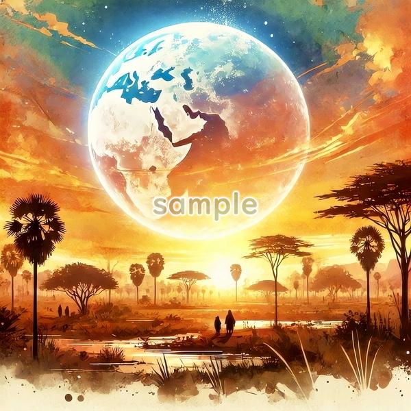 中央アフリカ 世界国景色 緑と夕日と光 水彩 オリジナル絵イラスト 156P Central Africa World country scenery green sunset light watercolor Original painting art picture image material