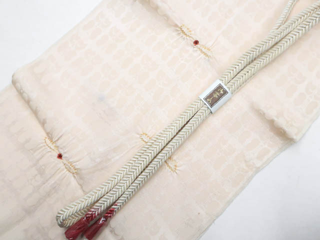リサイクル商品のため、帯揚げにしみと帯締めに薄汚れがございますが、ご使用頂けると存じます。 |