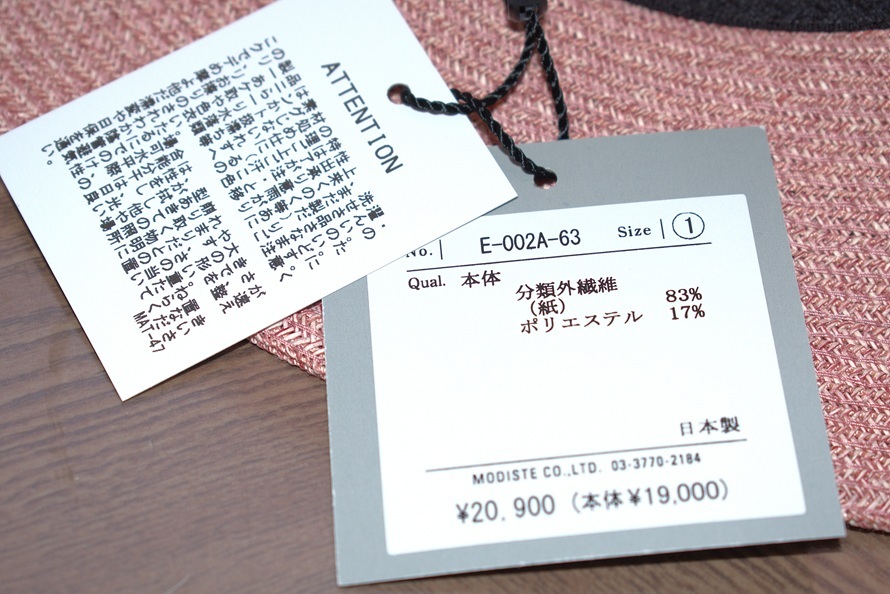 メイド・イン・ジャパン(表示あり)、表記サイズは1(頭周り約56cm)、素人採寸ですがツバ約6.5cm、高さ約13cm、素材は分類外繊維など、タグ付き未使用、購入時の定価2万900円(表示あり https://beans1989-1.jugem.jp/?eid=3817 参照)、購入後は型崩れを防止しながら遮光状態で大切に保管しています。