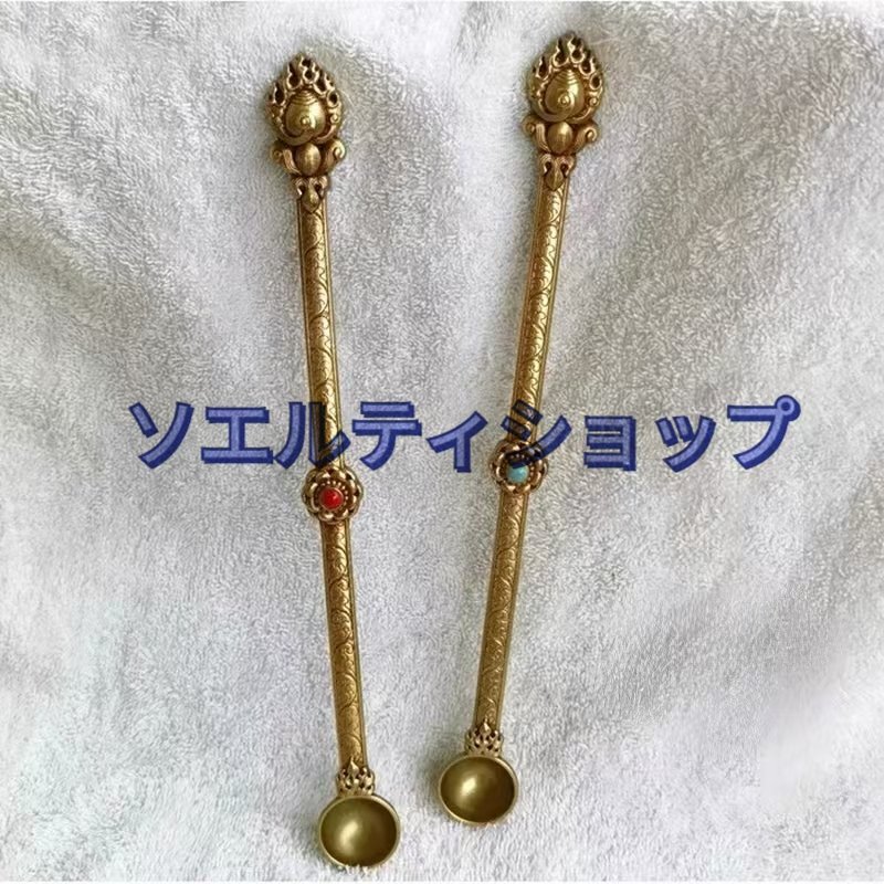 護摩杓(2点セット) 中型 (長さ24cm)◆護摩で使われる仏具・密教法具・寺院仏具・護摩器