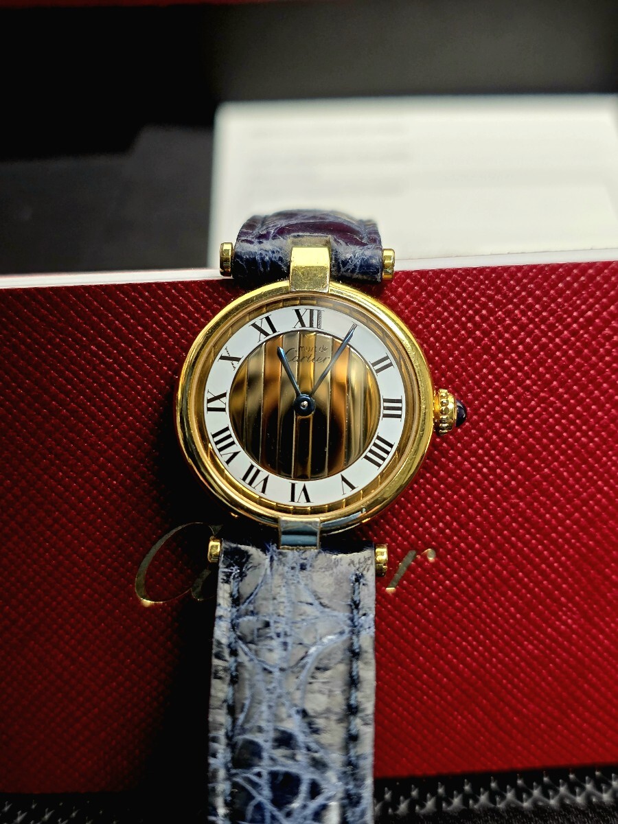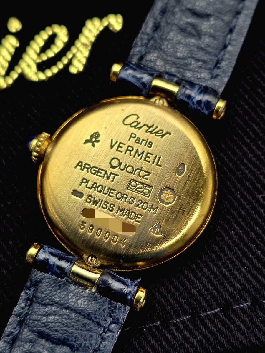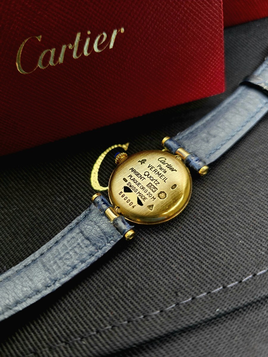 カルティエ VLC SM 590004 クォーツ SV925 革 純正尾錠トリニティ文字盤 レディース 腕時計。