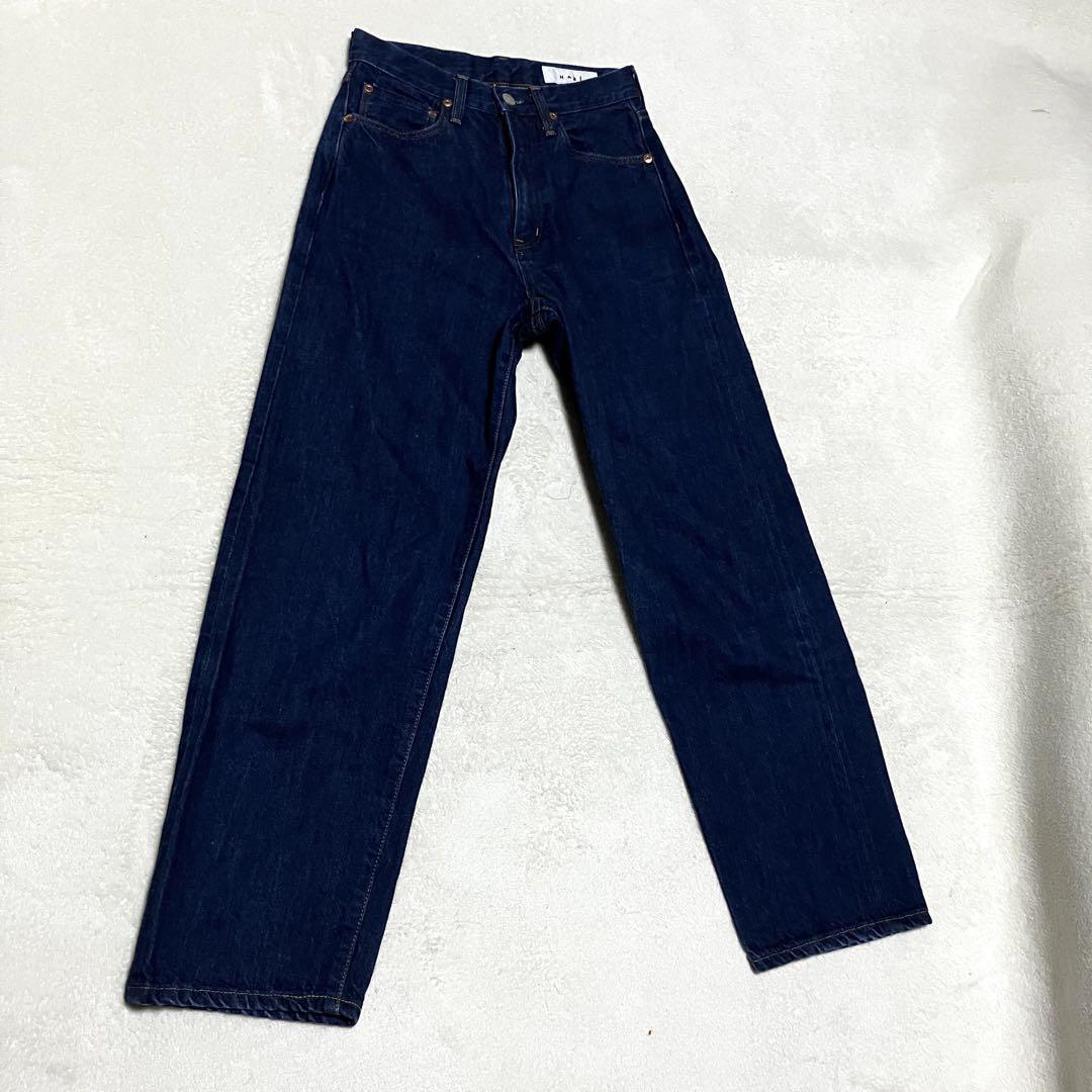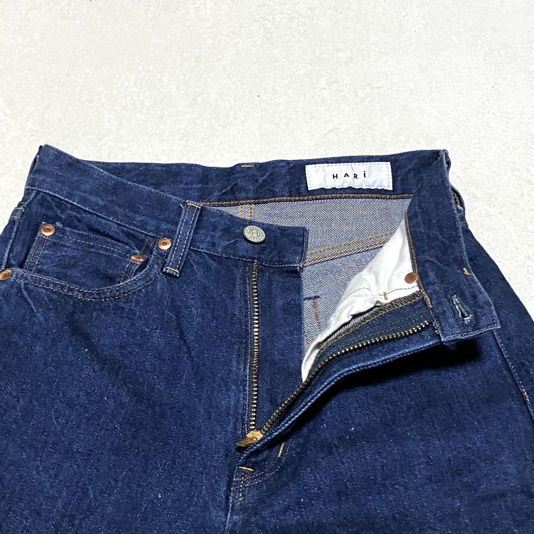 ハリ定番のデニムパンツ。股上が深く、程よいルーズフィットのシルエットです。ステッチの番手、カラー、運針など細部にこだわりを持った一品。生地は岡山産 12.5ozのセルヴィッチデニムを使用しています。ワンウオッシュで仕上げ、履き込む楽しみのあるパンツ。ベーシックアイテムなので、定番の1本としておすすめです。