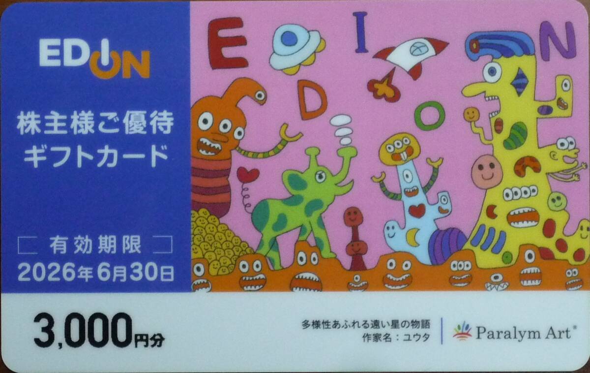 ■㈱エディオンの株主優待ギフトカード3,000円分です。 |