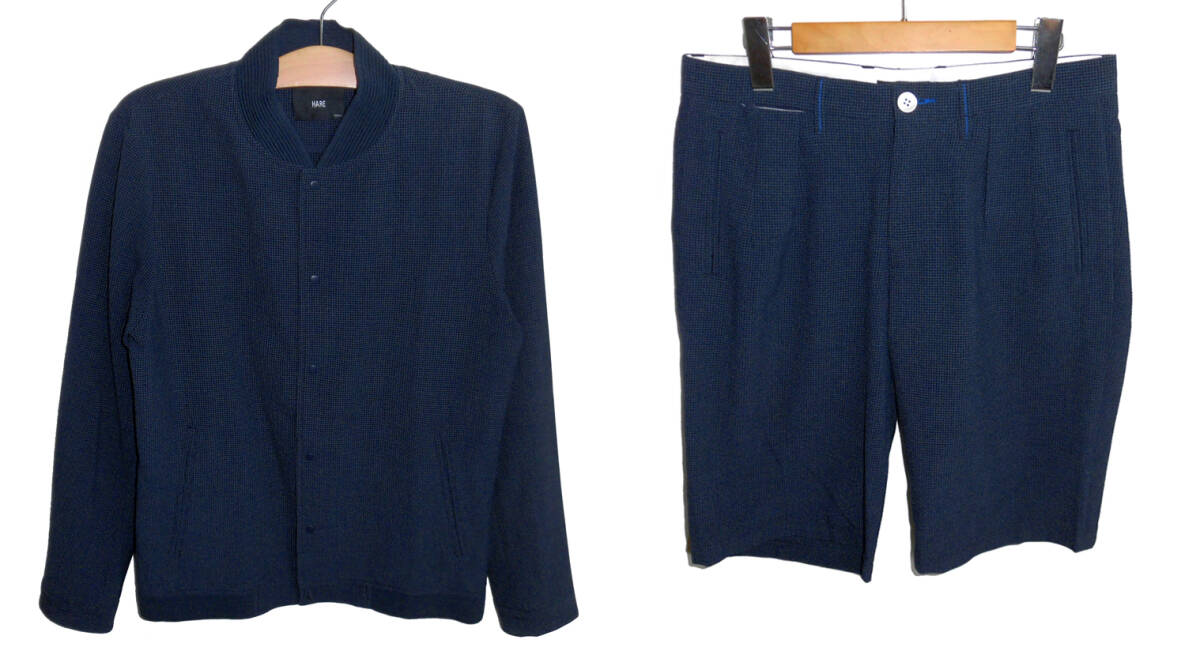 HARE ハレ シアサッカー ストレッチ 上下セットアップ シャツジャケット+ショーツ S-M ブルーグレー