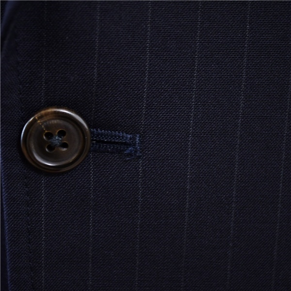 ・春夏対応。段返り。3つボタンシングル。袖口3つ釦開き見せ。背抜き。センターベント。フラップポケット。ネーム刺繍なし。