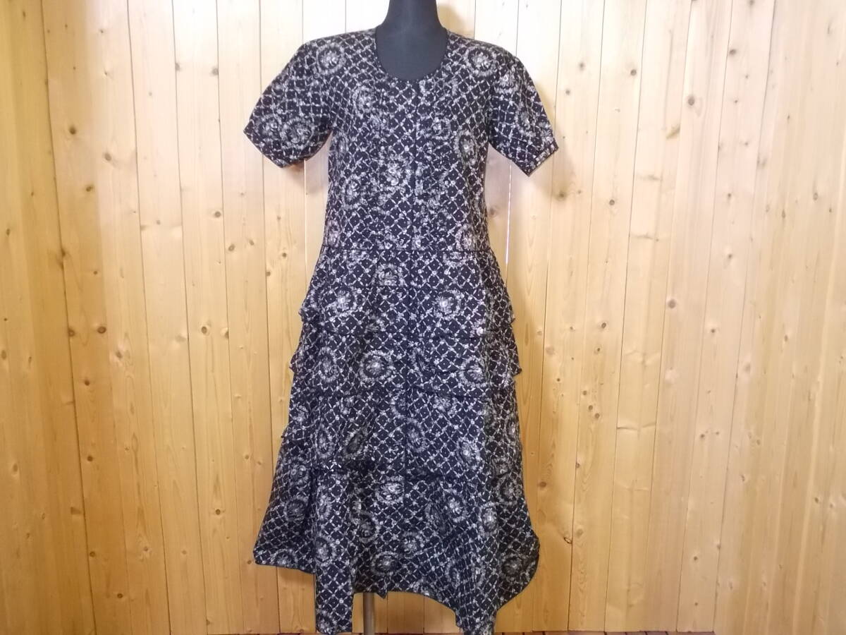 ◆サイズ表記ありません ◆カラー ブラック系 ◆素材綿100% ◆素人寸法ですが、身幅45cm 肩幅43cm 袖丈20cm 着丈116cmです ◆若干の誤差は、お許しください ◆当社実寸測定方法はこちらでご確認下さい ◆画像は実際の色とデジカメ、モニターの性能上多少異なる場合があります ◆特に気になるシミ、ダメージ等は、ありませんが、used品の為クレーム、返金はご遠慮ください |