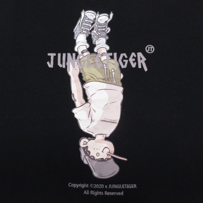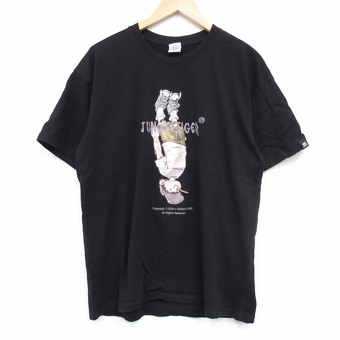 【商品名】 L★古着 半袖 Tシャツ メンズ ジャングルタイガー コットン クルーネック 黒