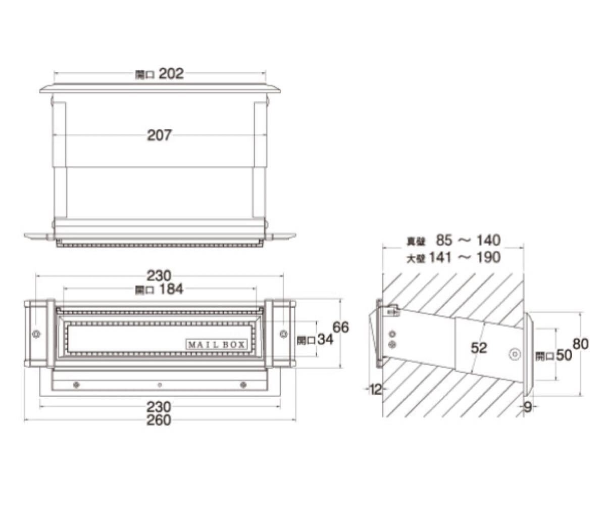 メイルシュートNo.18厚壁用 ステン色 郵便受口 ポスト 郵便受け