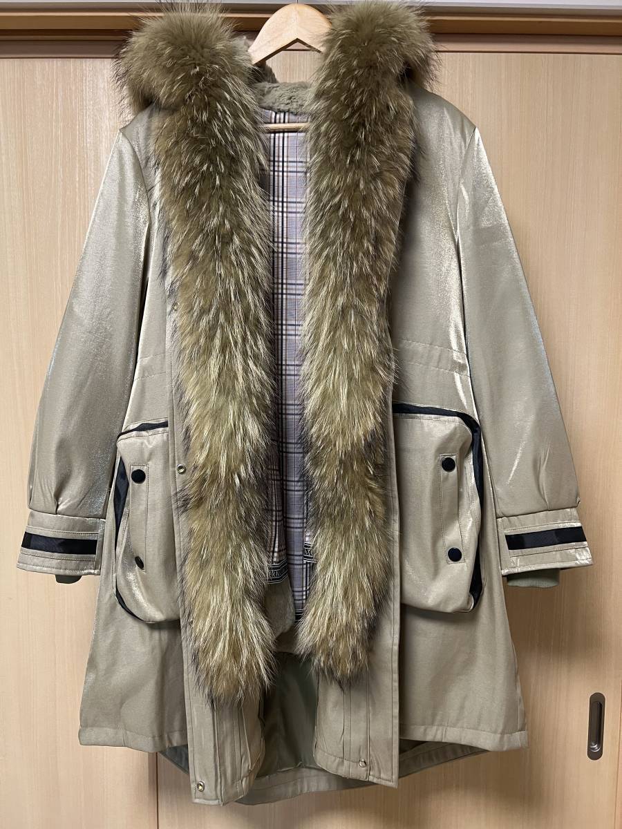 新品 ラビットファーライナーモッズコートフード付きラクーントリミング毛皮ファー |