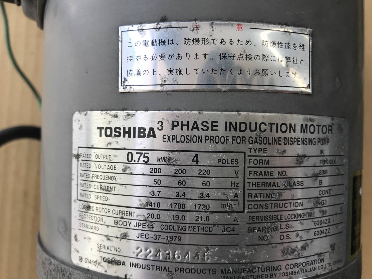 値下げ!! モーター 防爆 モーター 東芝 200v 0.75Kw 4P 軸径 19     ⑤