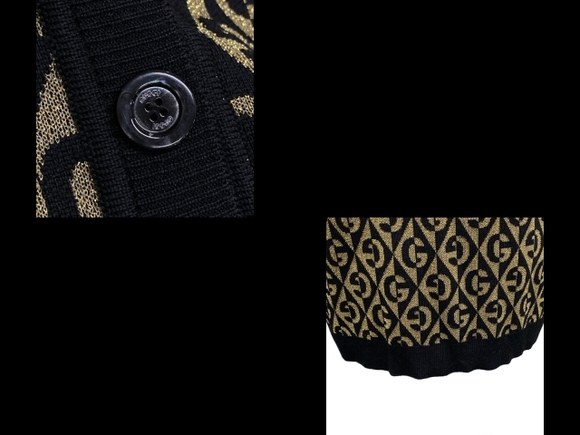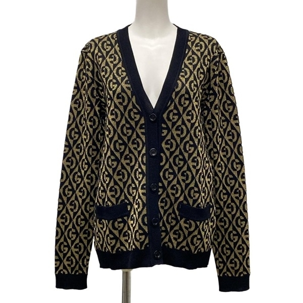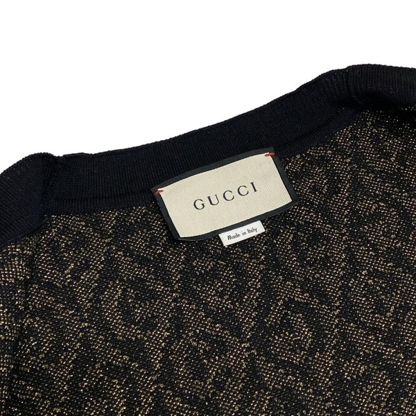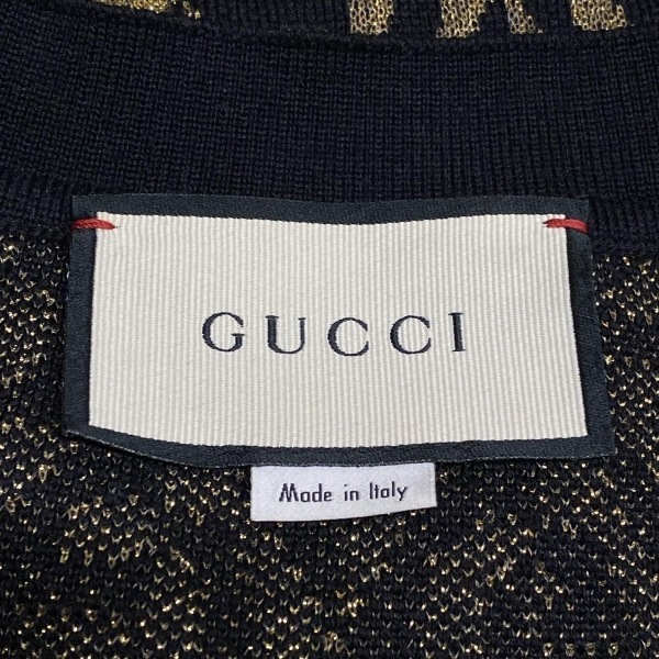 グッチ GUCCI カーディガン サイズXS 595659 XKA00 - ウール 黒×ゴールド レディース XSサイズ/ニット/Gランバス 美品 トップス