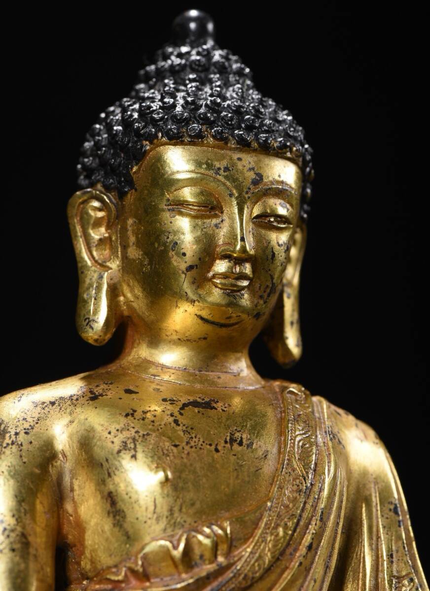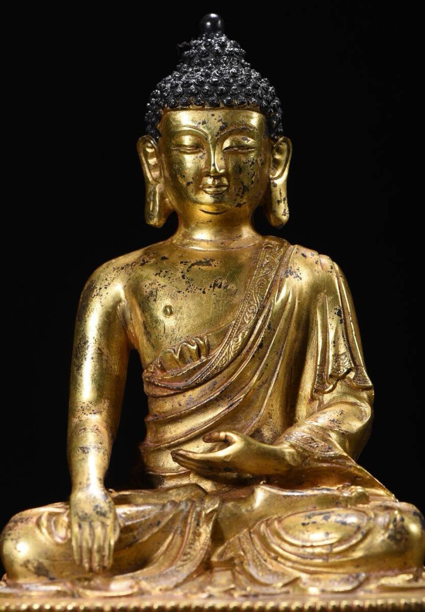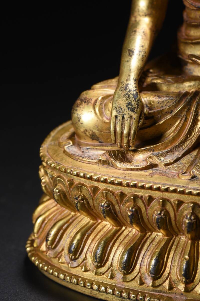 旧 清代 銅脱金 阿弥陀仏 造像 古家具 中国古美術 古賞物 古置物 唐物 S78