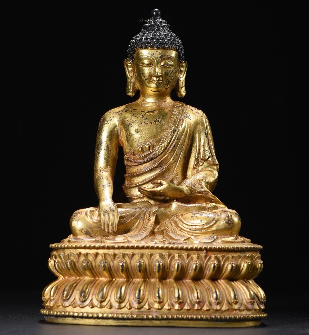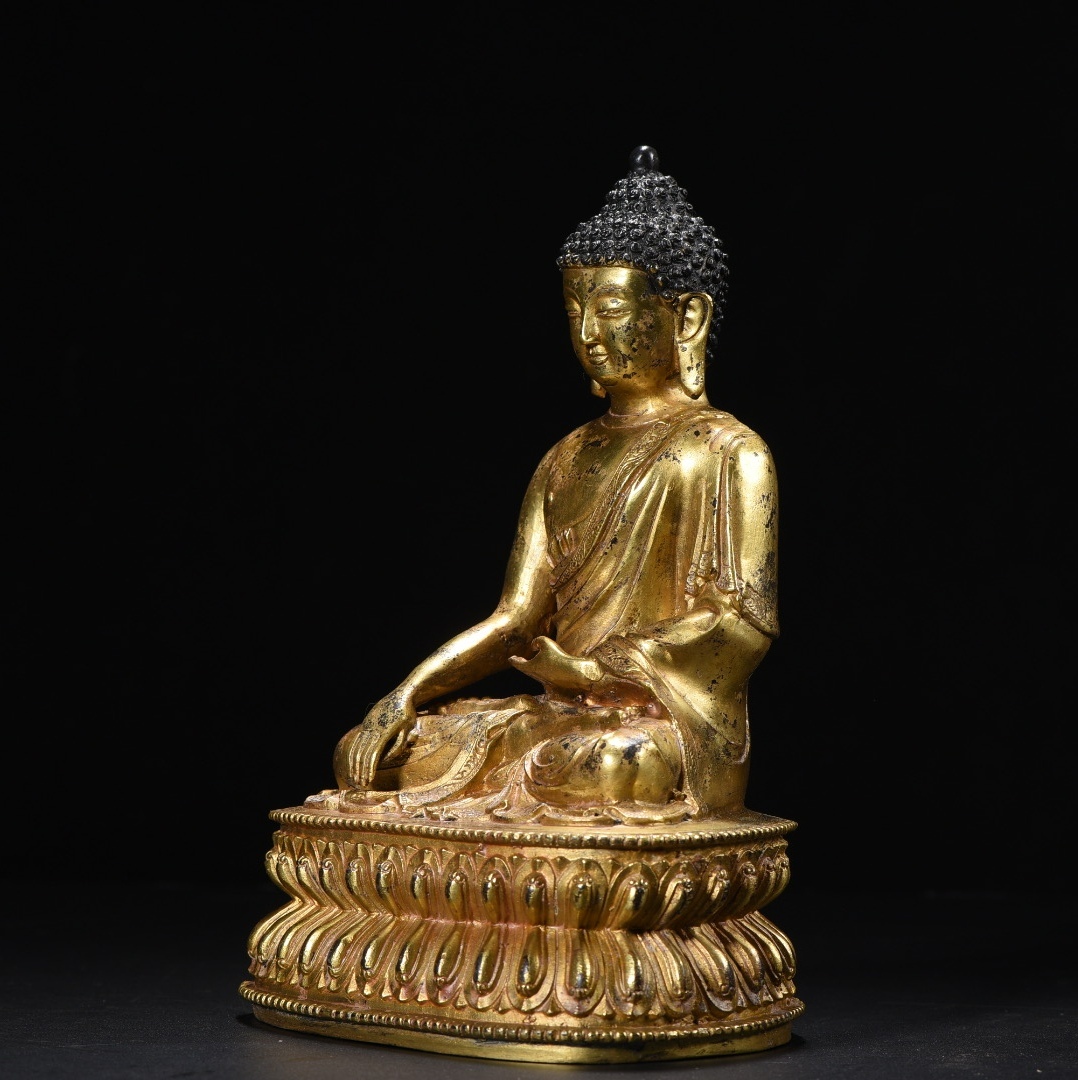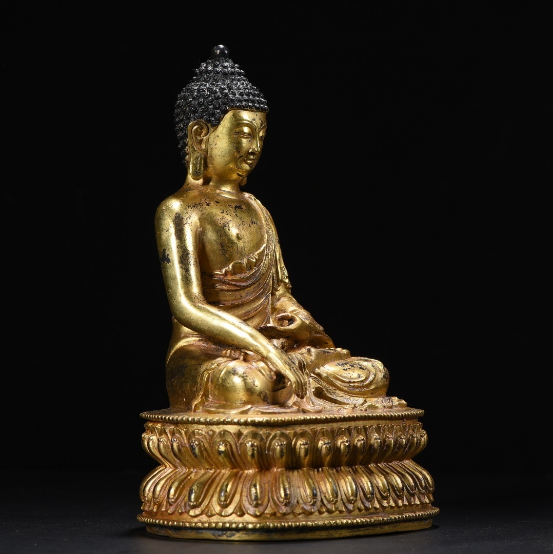 旧 清代 銅脱金 阿弥陀仏 造像 古家具 中国古美術 古賞物 古置物 唐物 S78