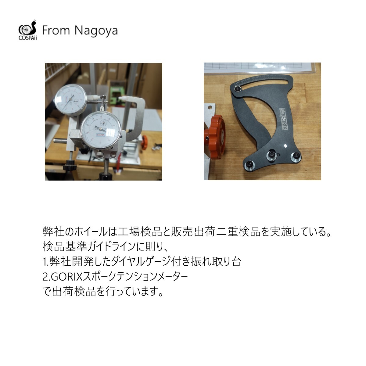 *リムはダブルウォールアルミ製です。塗装は電解酸化処理で、見た目がカーボンホイールようカッコイイで、カーブンに比べて剛性や耐久性が高くて初心者でも扱いやすいです。