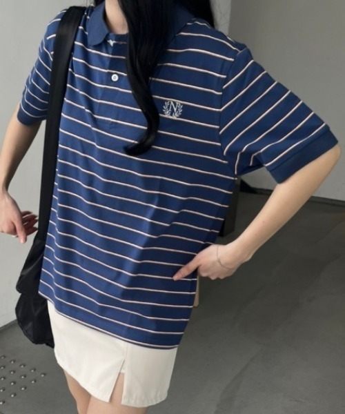 参考商品名:【 低身長サイズあり】ワンポイント刺繍入りラインポロシャツ