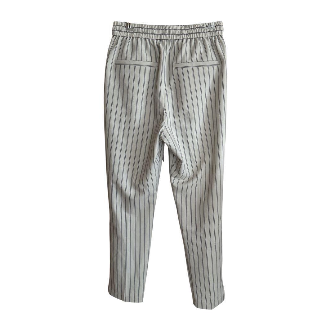ストライプデザインのカジュアルパンツ、サイズ38、バックポケット付き。