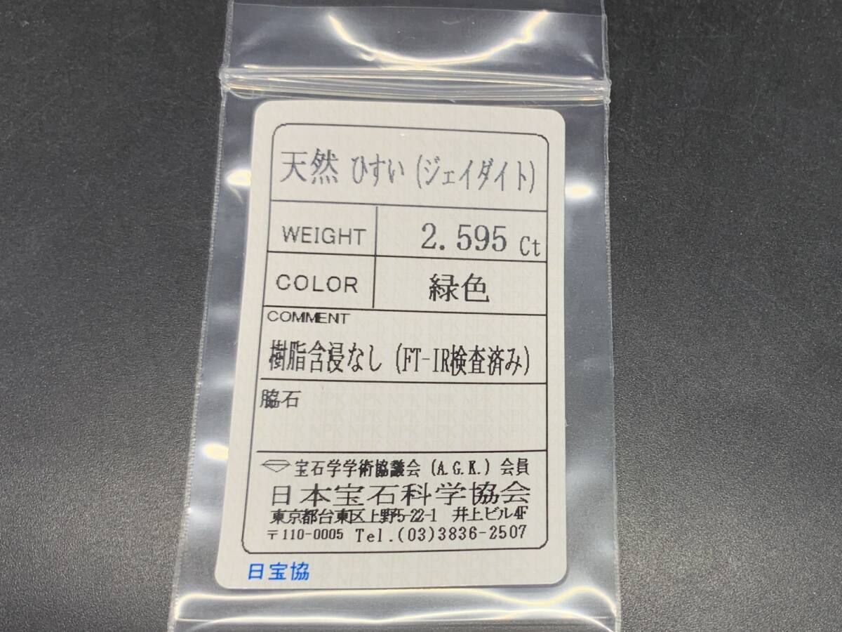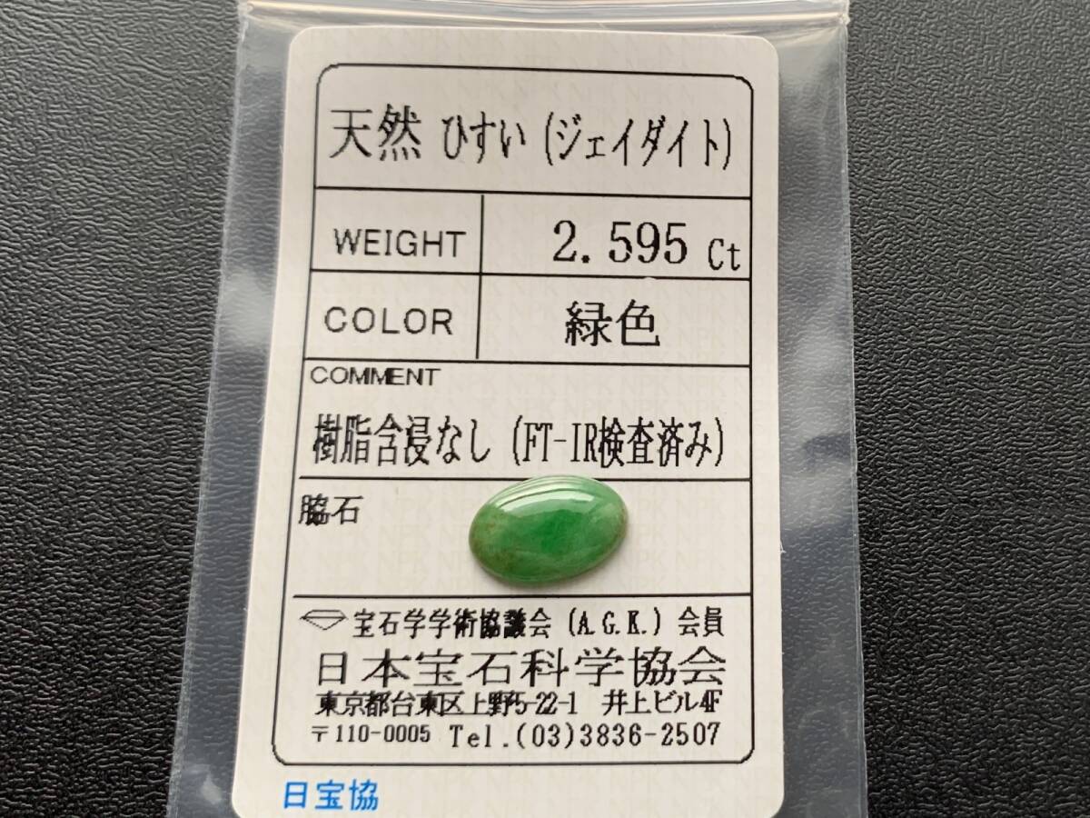 | 商品説明 | たくさんの商品の中からご覧頂きましてありがとうございます。 ★ご質問やオファー金額がある際はお気軽にコメントください。出来る限り頑張ります! ※数が多いのも大丈夫です。 ★ギフトラッピングを無料で承ります。 ご希望の場合は、ご購入時にお知らせ下さい。 ※準備にお時間を要する場合がありますのでご理解頂けると幸いです。 写真は、室内で撮影しております。 被写体となるものは撮影ライトの映りこみがありますのでご理解頂ければと思います。 商品状態は出来る限り画像で確認できるように撮影に努めておりますので、お写真でご確認いただければと思います。 ご不明な点は入札前にご質問宜しくお願いいたします。 ◎出品詳細 宝石ソーティング付き 天然 ヒスイ 翡翠 2.595ct 12.1×8.3×2.7 鑑定機関:日本宝石科学協会 |
