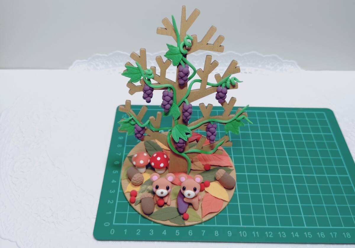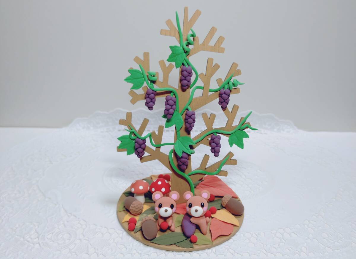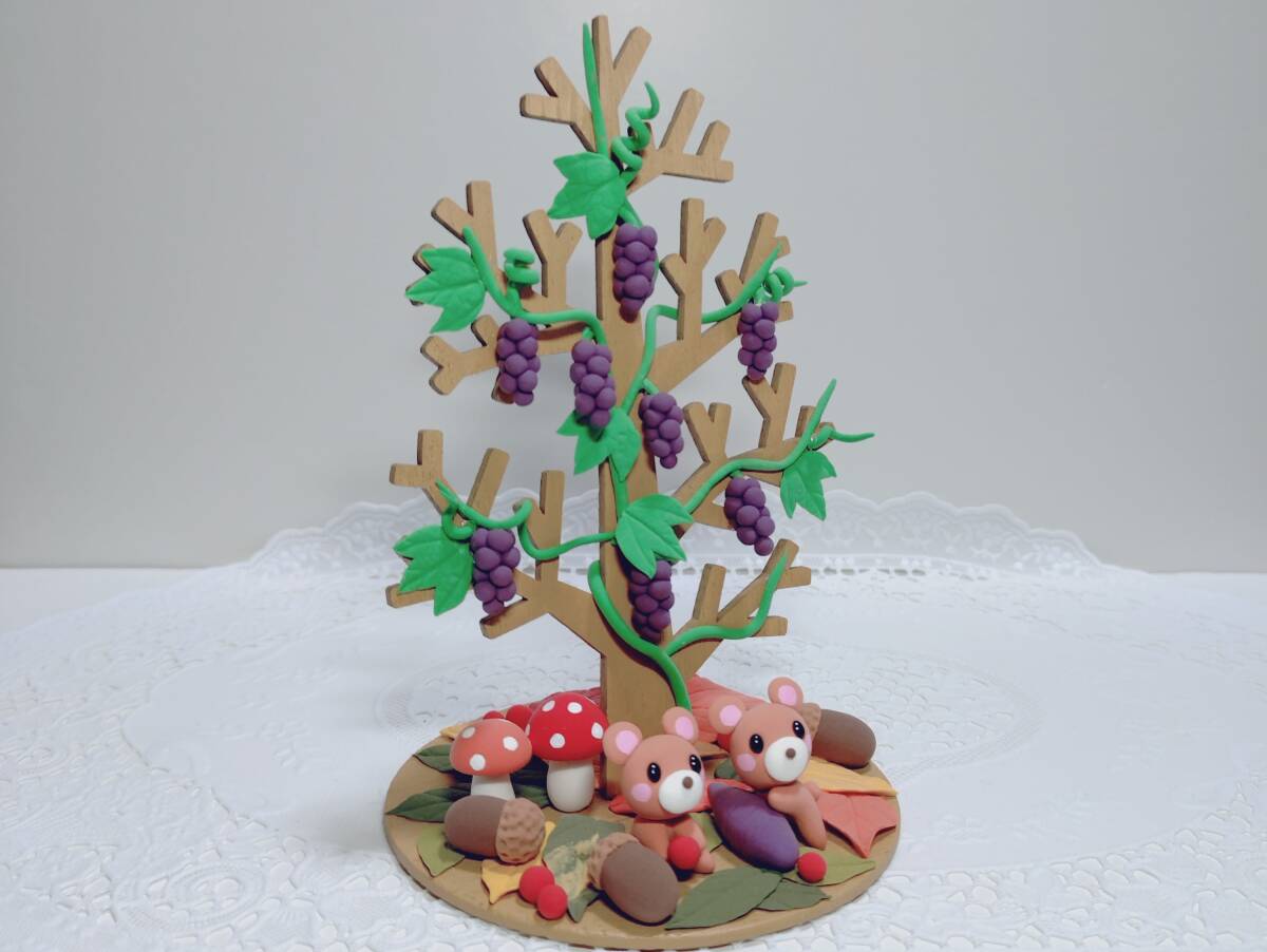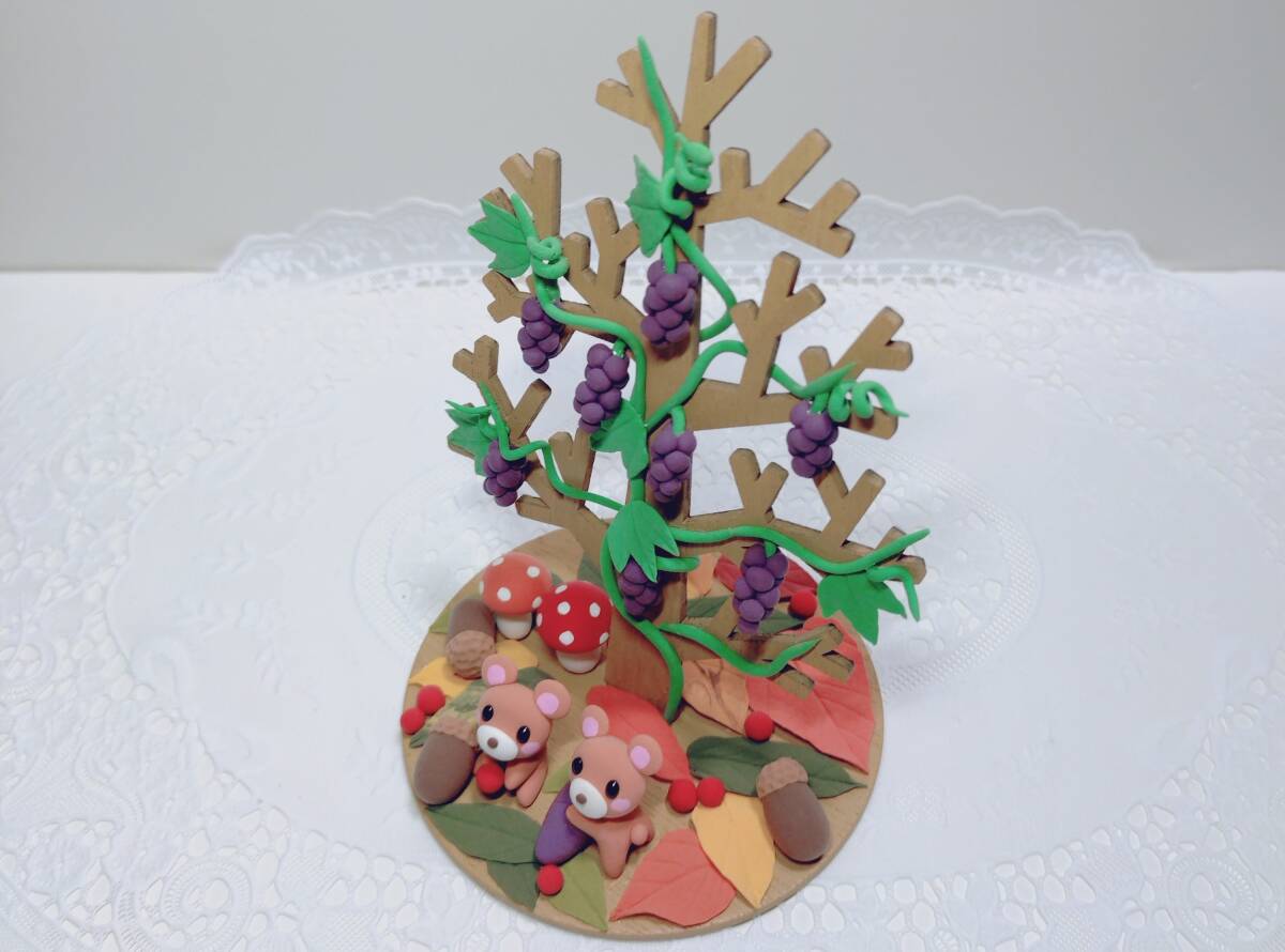 (ねこたぬ工房)ハンドメイド☆樹脂粘土☆くま☆ぶどう☆キノコ☆どんぐり☆サツマイモ☆置物