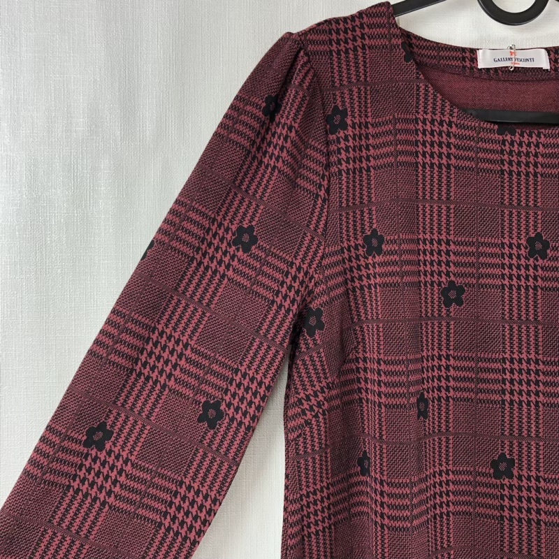 商品名 | ギャラリービスコンティ GALLERY VISCONTI チュニック 長袖 チェック柄 花柄 リボン フリル 冬 タグ付き ボルドー系 2サイズ 920789 |