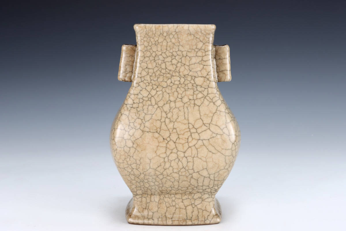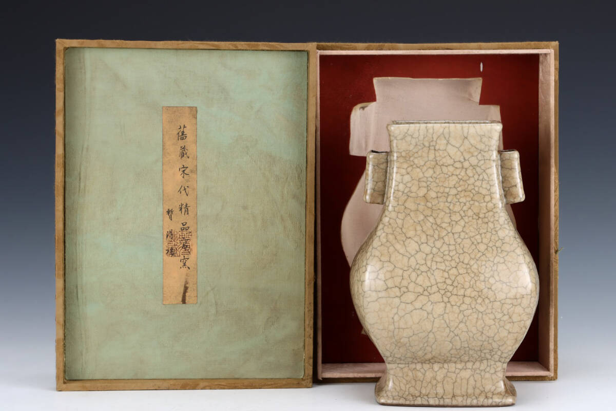 ▽鴻▽宋朝時代 陶磁器 哥窯耳瓶 箱付き 染付 時代物 中国古美術 骨董品