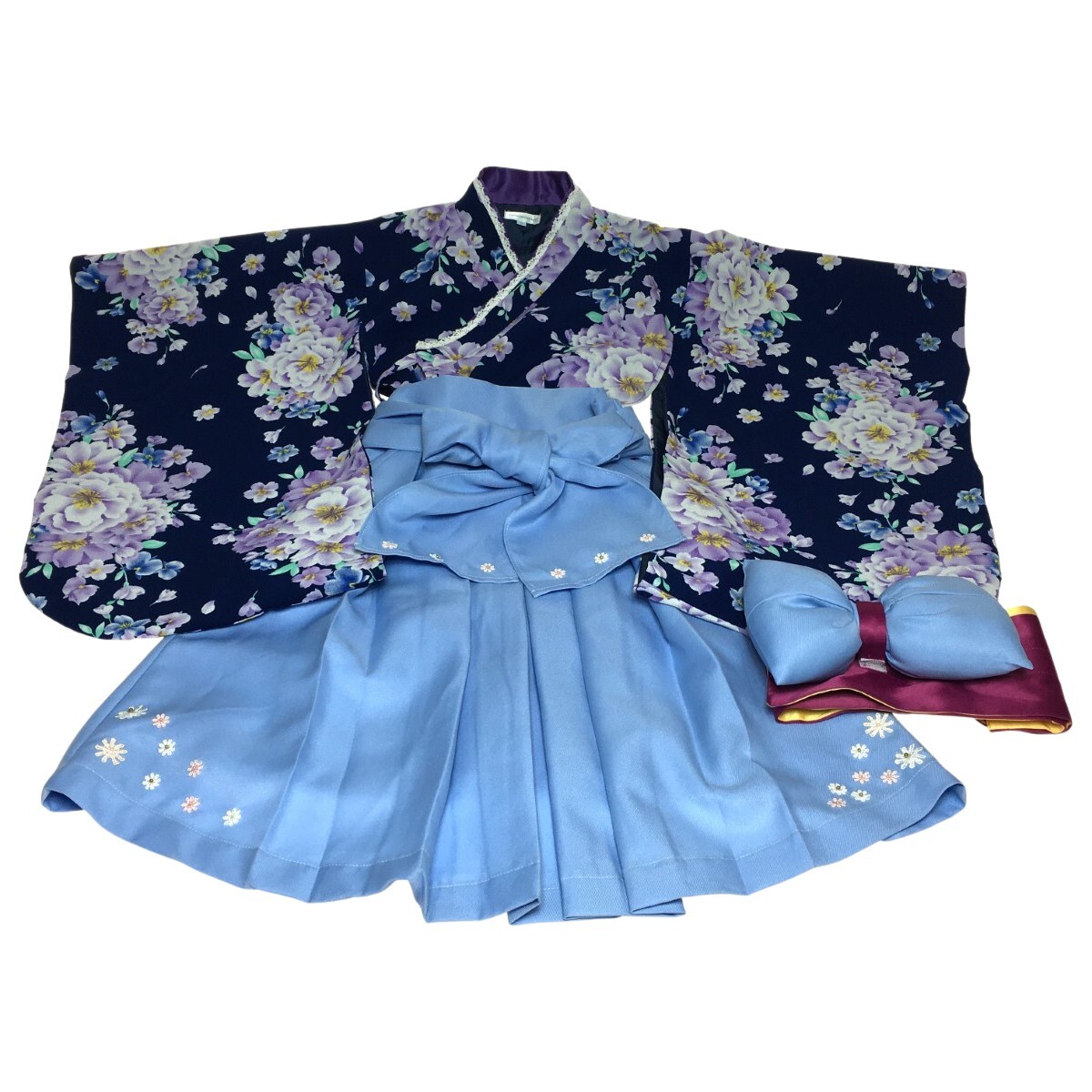 【商品名】中古 Catherine Cottage 袴3点セット 上衣 袴スカート 帯 ネイビー×スカイブルー やや傷や汚れあり