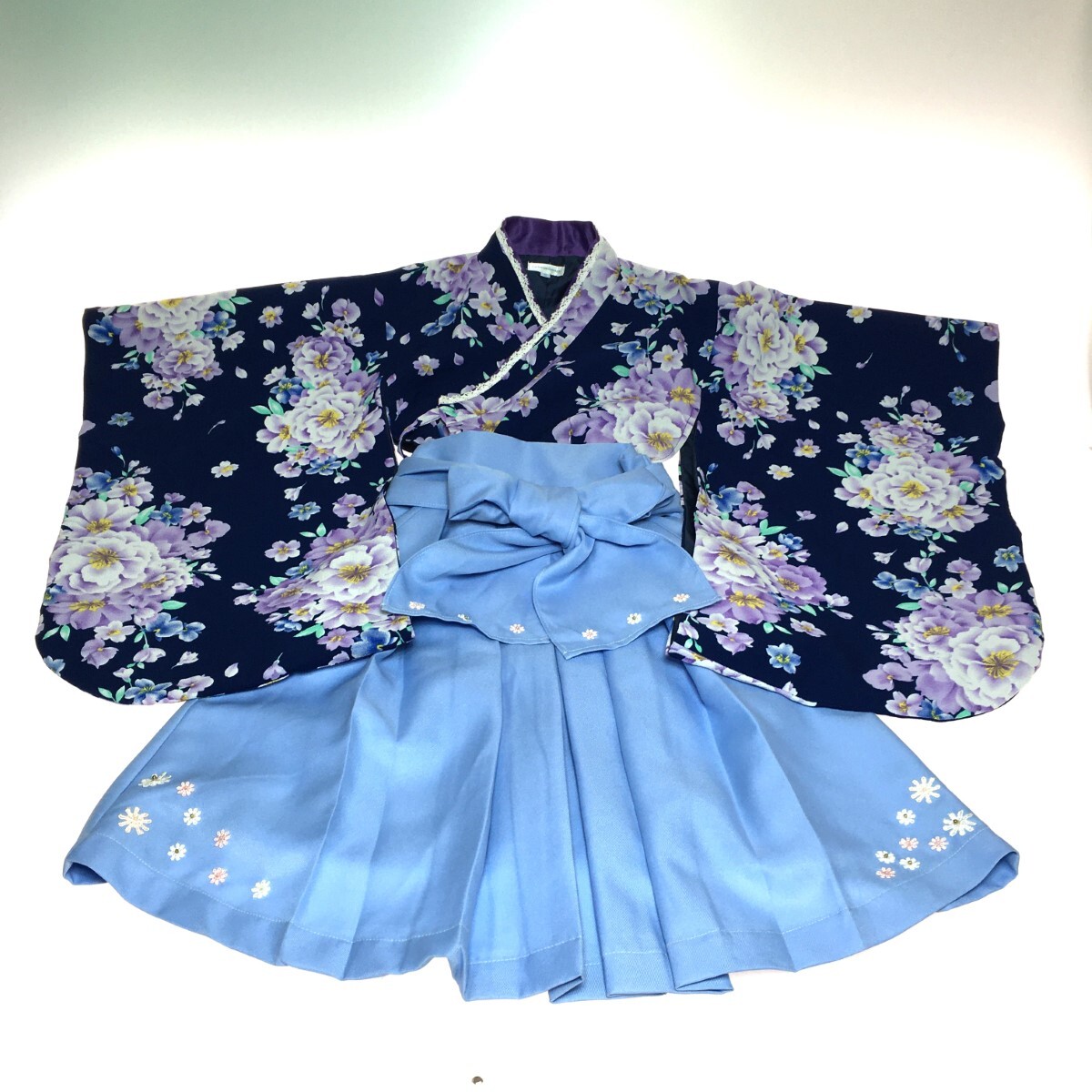 ◎◎ Catherine Cottage 袴3点セット 上衣 袴スカート 帯 ネイビー×スカイブルー やや傷や汚れあり