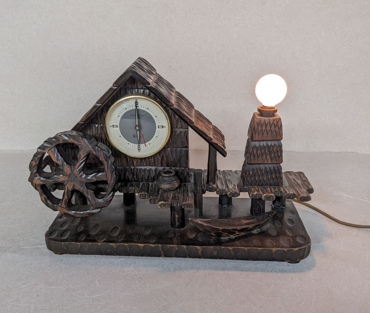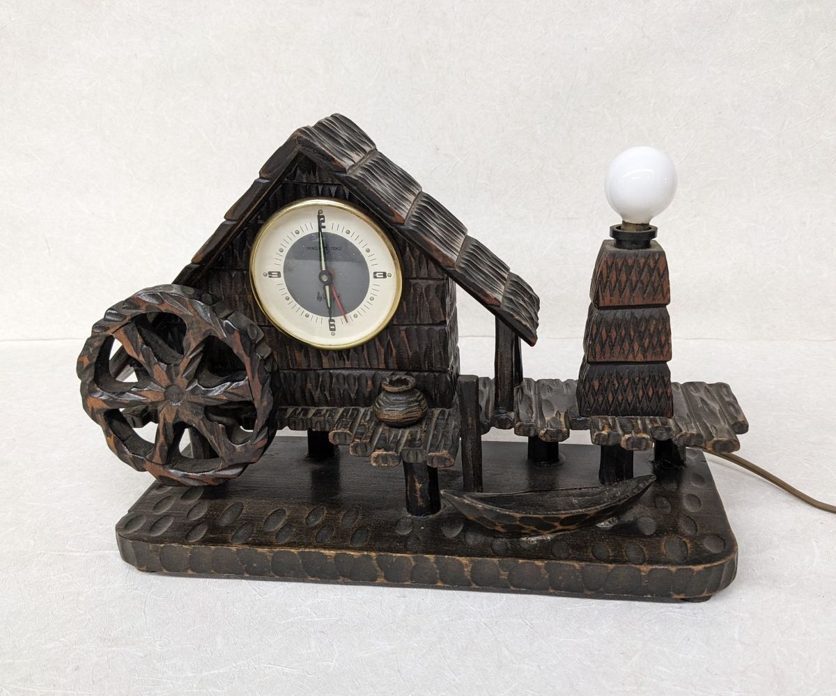 hh503■【現状品】MEIKO 名巧時計 アナログ時計 水車小屋 古民家 木製 オルゴール アンティーク インテリア AC電源/80