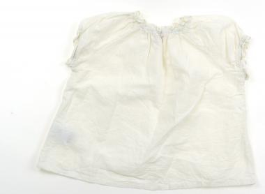 透け感あるコットン製です。全体にシワ、胸にやや目立つシミが見受けられます。