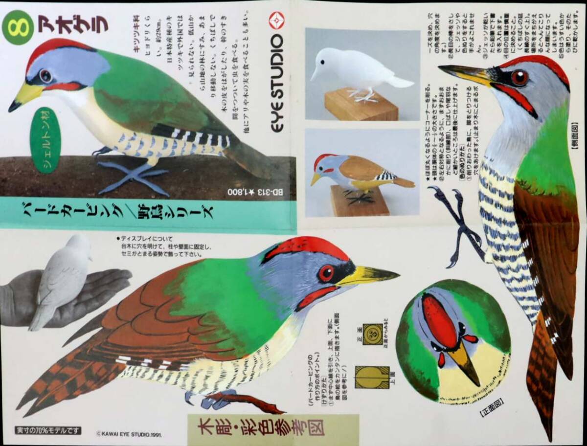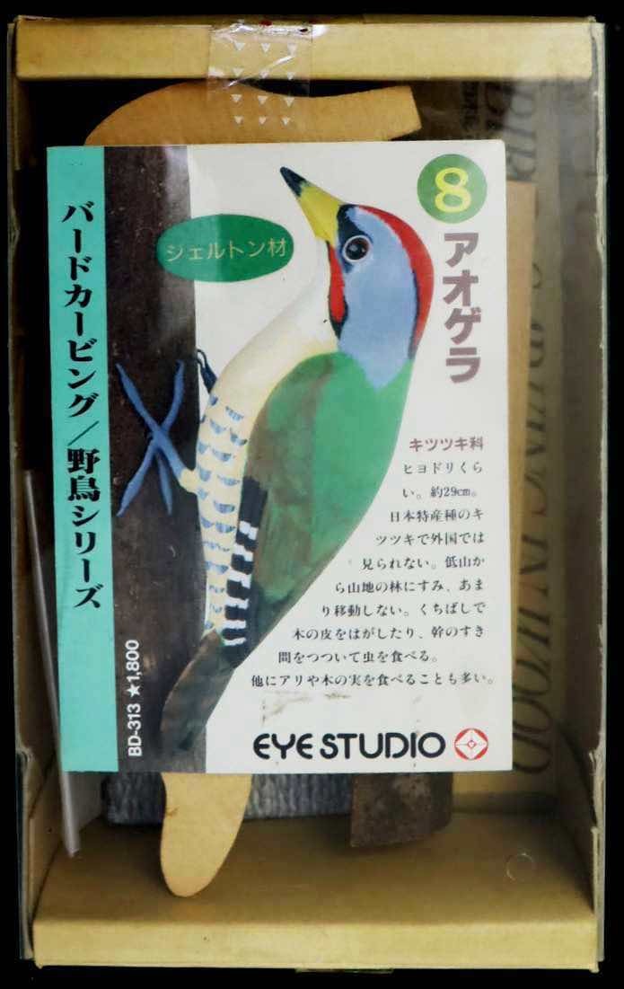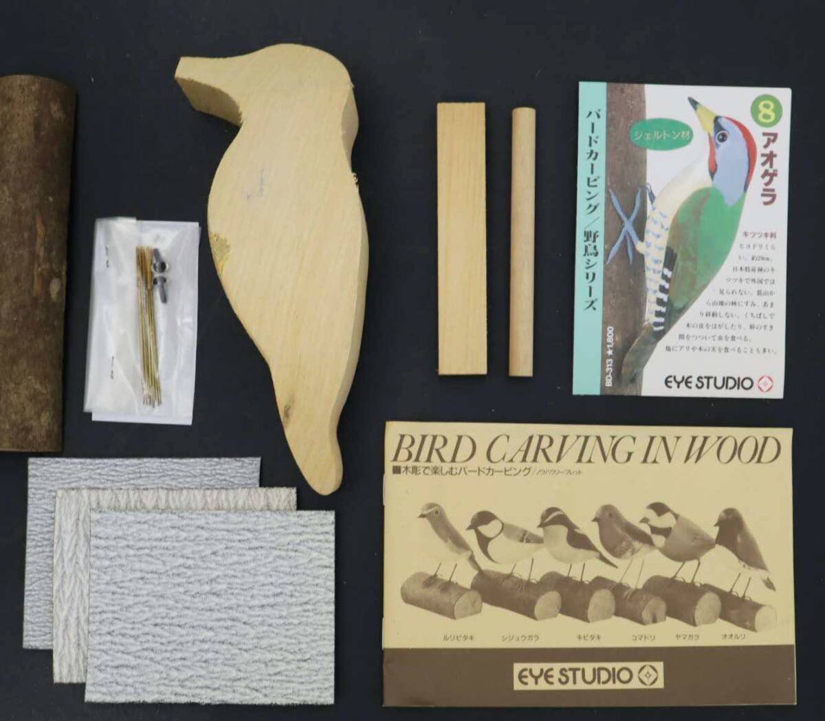 バードカービング、『アオゲラ』ジェルトン材、箱サイズ 高サ19.3x横11.5x厚サ5.0cm,EYESTUDIO製、キット内容、本体、脚、目玉、解説書
